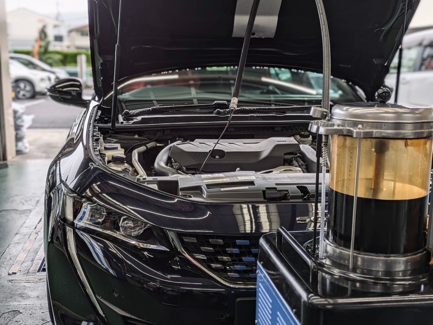 本日はプジョーのエンジンオイル交換のご紹介になります。