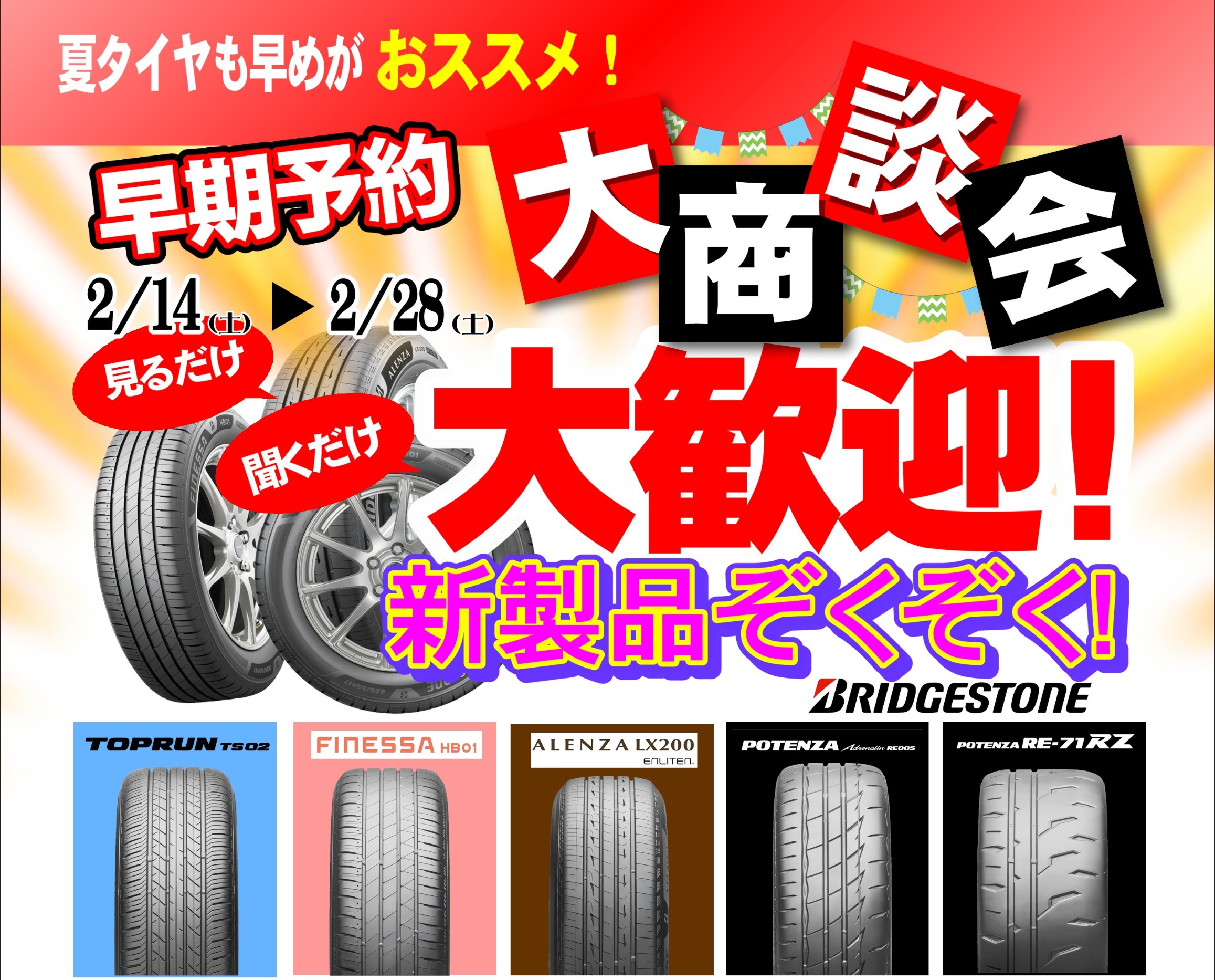 2月になりブリヂストン夏タイヤの新製品がぞくぞく登場しました。