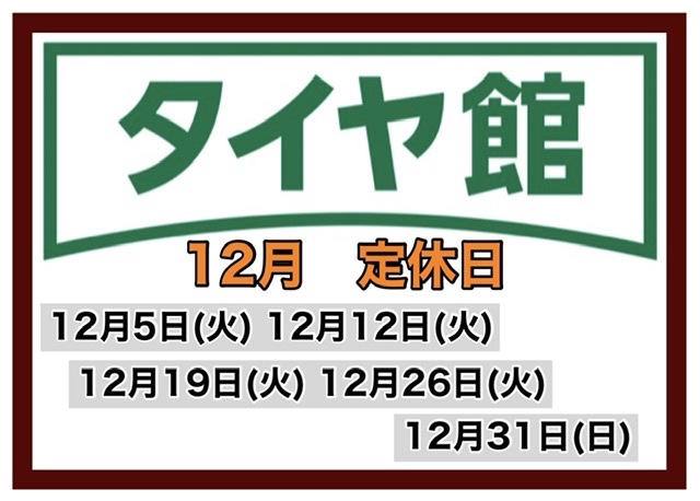 本日定休日になります。お間違えのないようお願い致します。 ポスト 2023年12月12日 いつもタイヤ館松山店をご利用頂き 誠にありがとうございます! 毎週火曜日は定休日になります。 ご利用・ご来店の際は、 お間違え無いよう宜しくお願い致します! タイヤ館 松山 住所:790-0053愛媛県松山市竹原2-1-26