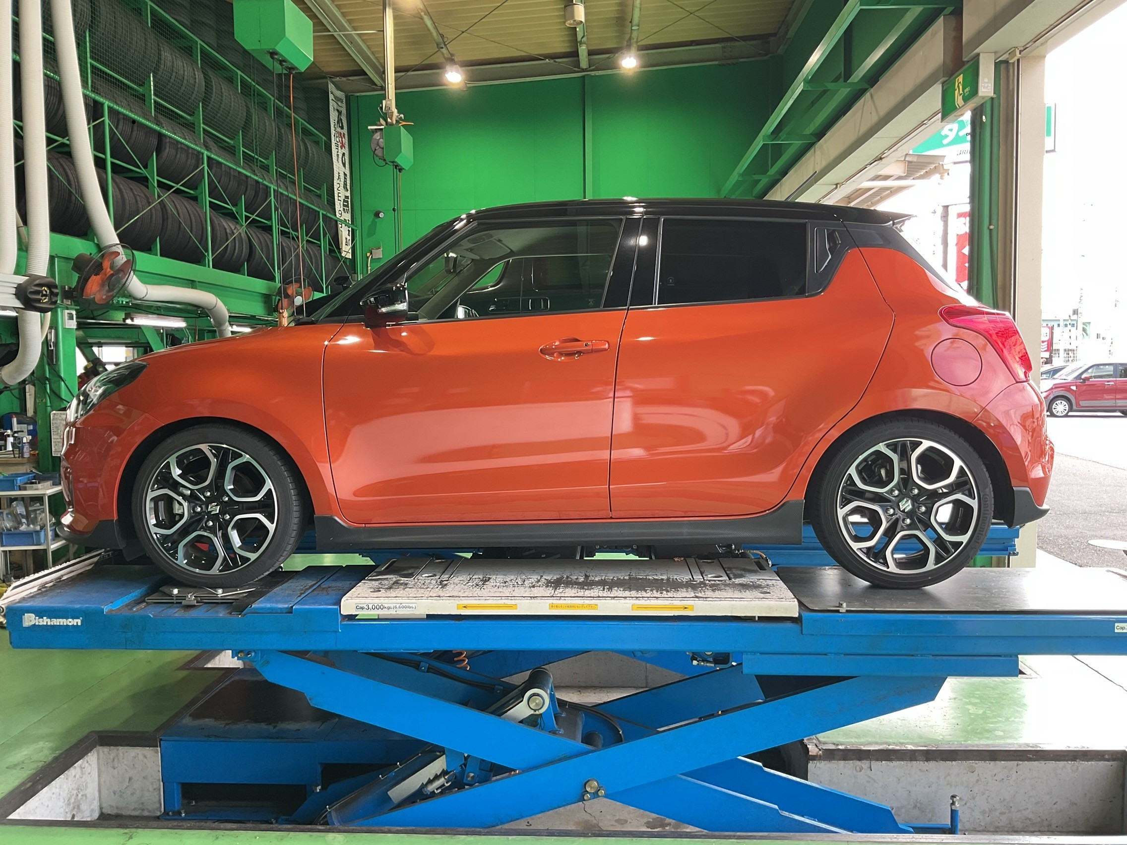 今回はスイフトスポーツにアルミホイールを装着しましたので