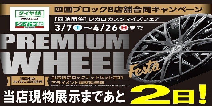 3/7(土)~4/26(日)まで愛媛県・香川県・徳島県のタイヤ館が合同で開催する