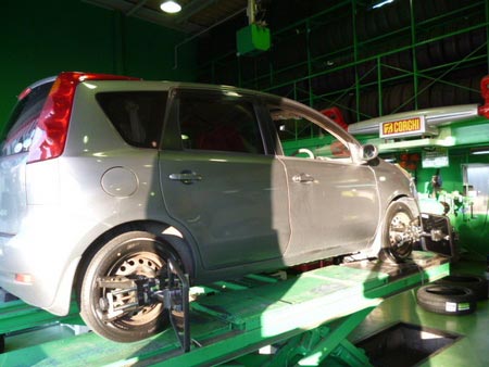 ノート アライメント ポスト 2014年12月4日 今日は、ニッサンノートのアライメント今回も、REGNO GR-XTとアライメントのセットREGNOを買って頂いてる、お客様は、アライメントをとって快適に、ドライブして頂くために、セット販売をおすすめしています是非、宜しく御願いします。 担当:2級整備士 渡部