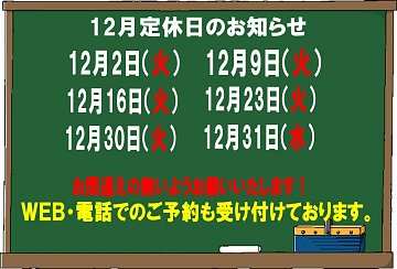 12月定休日のお知らせ!!