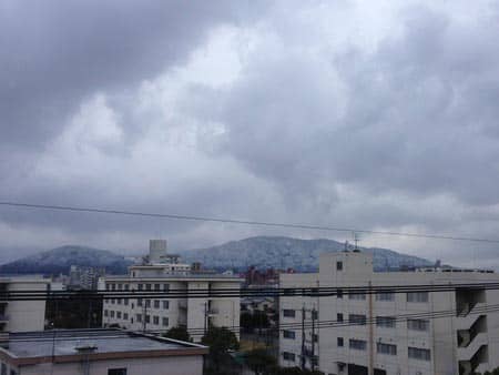 山に雪積もってますやん!!