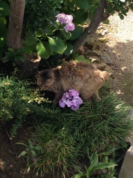 紫陽花と猫