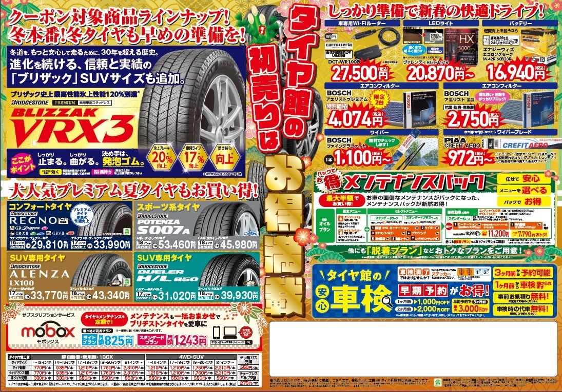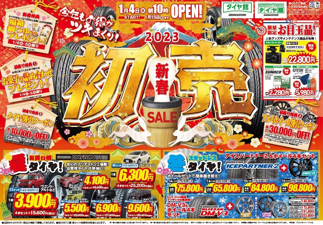 初売り開催中に是非タイヤ館松崎へお越しください。