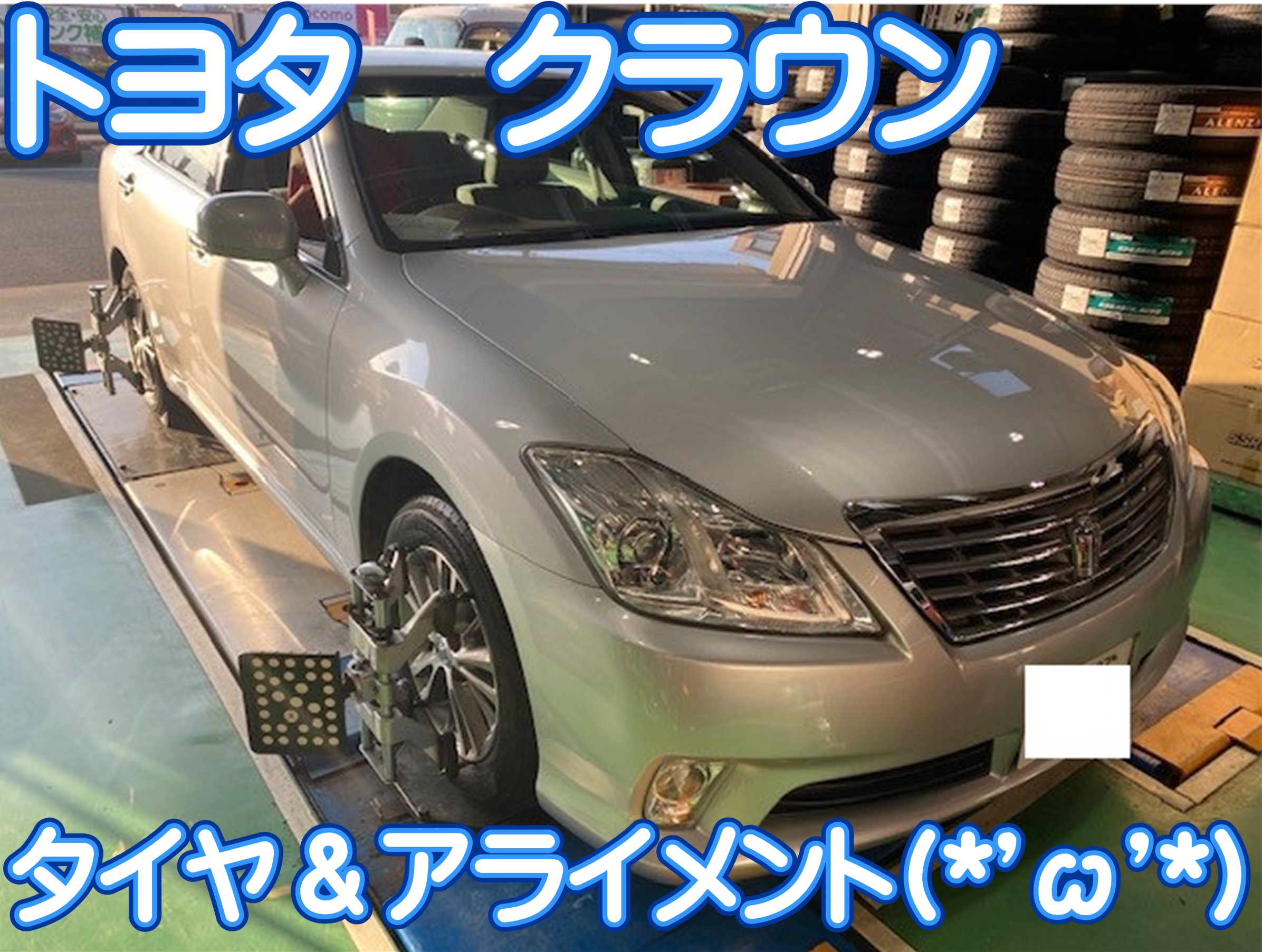 本日は、トヨタ クラウンに、タイヤ4本交換&アライメントを実施いたしました!