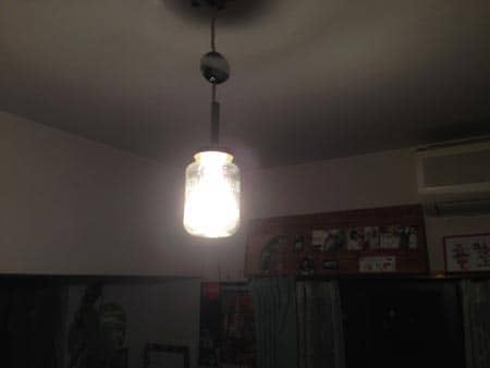 最近よく見かけるガラス瓶を加工したお洒落なランプ