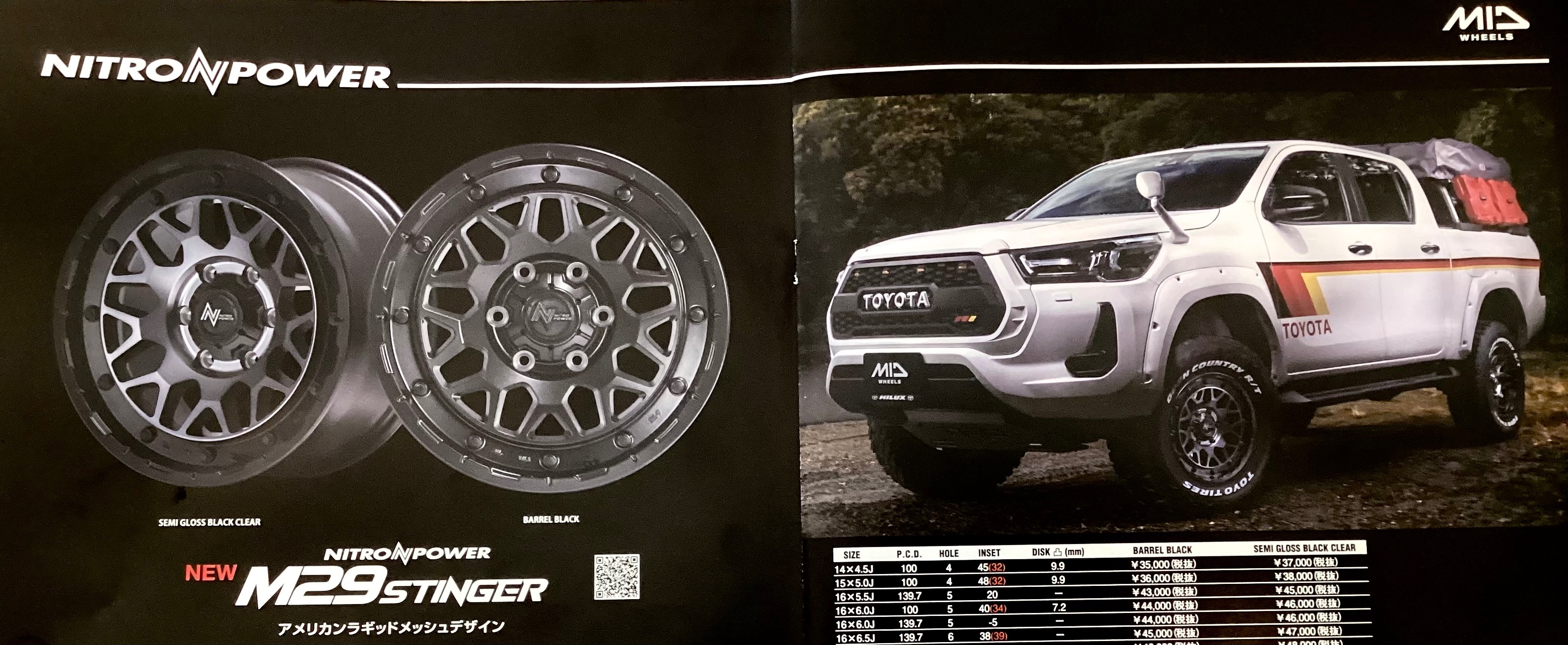 上げのセミグロスブラッククリアの2種類でオールテレンタイヤと組み合わせること