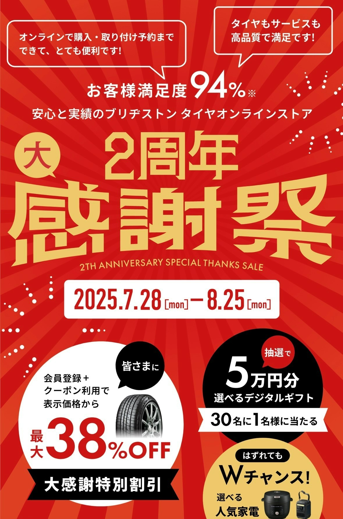 #ブリヂストン #タイヤ交換 #オンライン限定 #キャンペーン #お得情報 #2周年