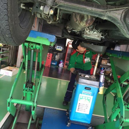 写真はオイル交換を頑張る新人の筒井スタッフです~