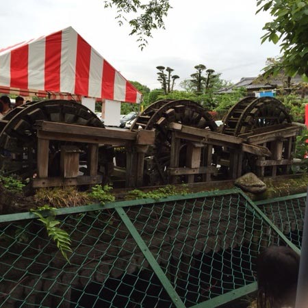 写真は養蜂場にあるミニチュアの三連水車です~。