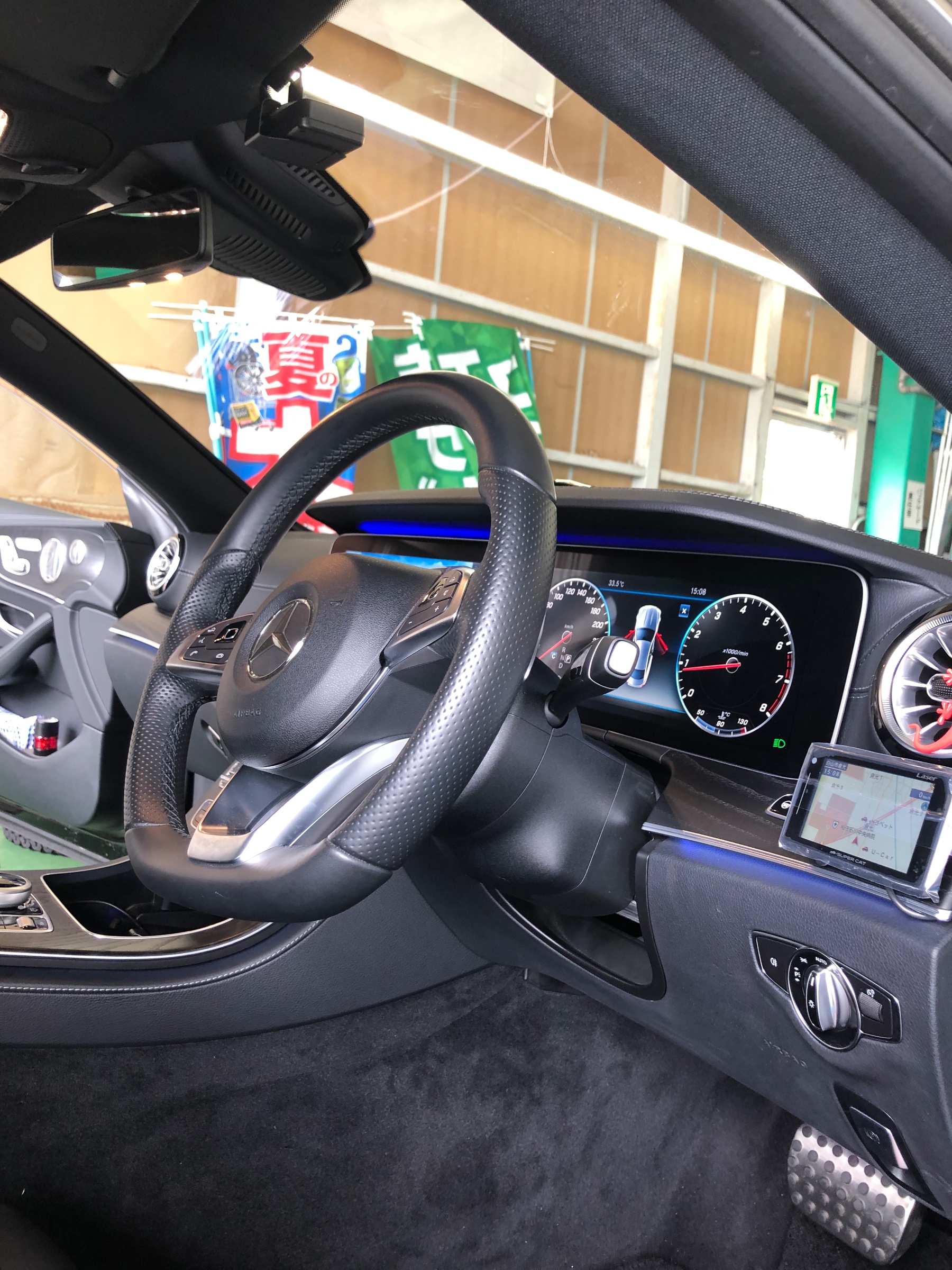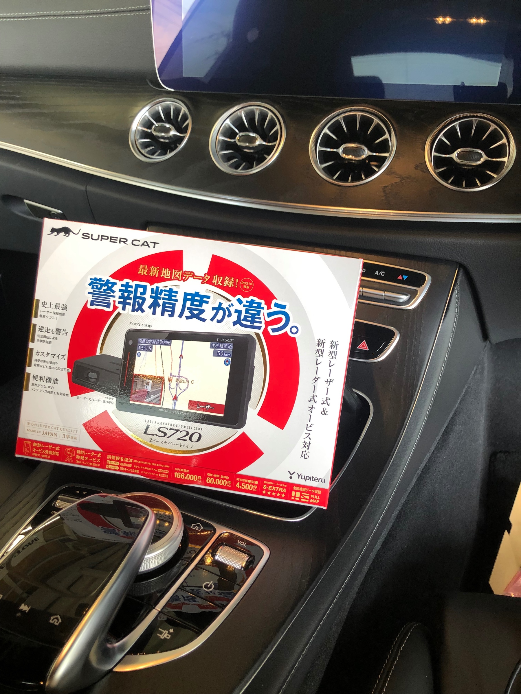 メルセデス ベンツ Eクーペにレーダー探知機と携帯電話の置くだけ充電を取り付けました