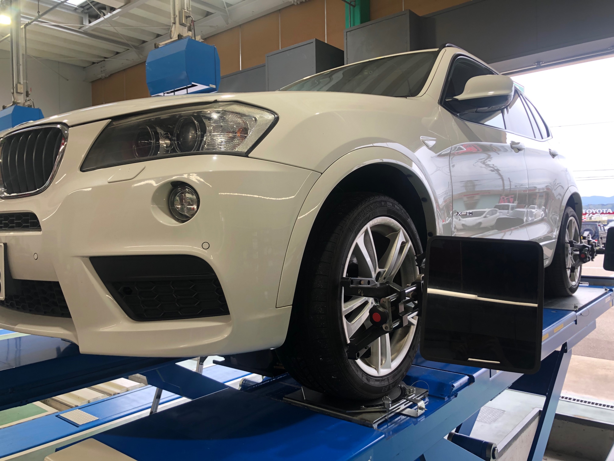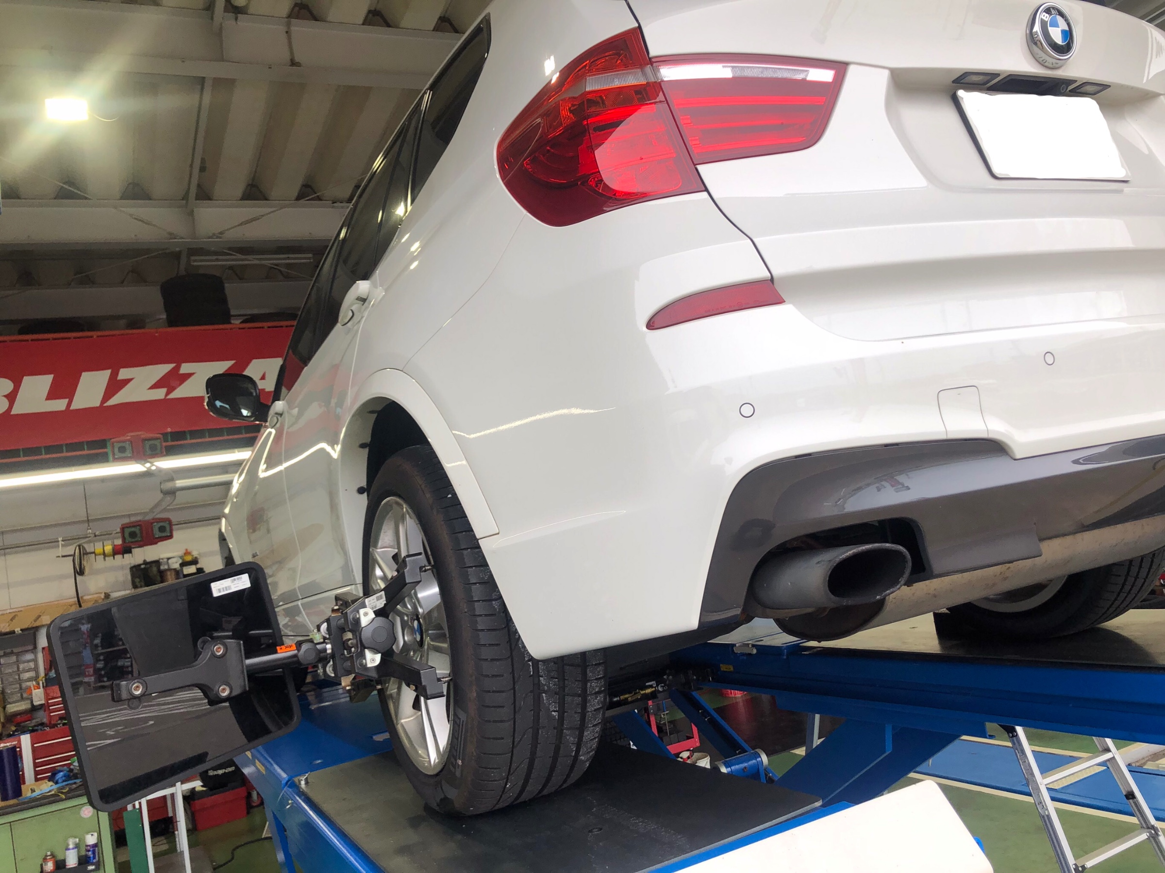 BMW X3アライメント ポスト 2022年10月6日 今回の作業は BMW X3 F25系のアライメント作業です ステアリングギアボックスを交換されたのでアライメントを見て欲しいとご依頼がありました 測定の結果はフロントのトーインが右はトーアウト左はトーインになっていました リアも左のキャンバーが基準値よりおきていてトーインは基準値内には入ってましたが左右差がありました 今回6ヶ所調整を行いました 作業依頼ありがとうございます