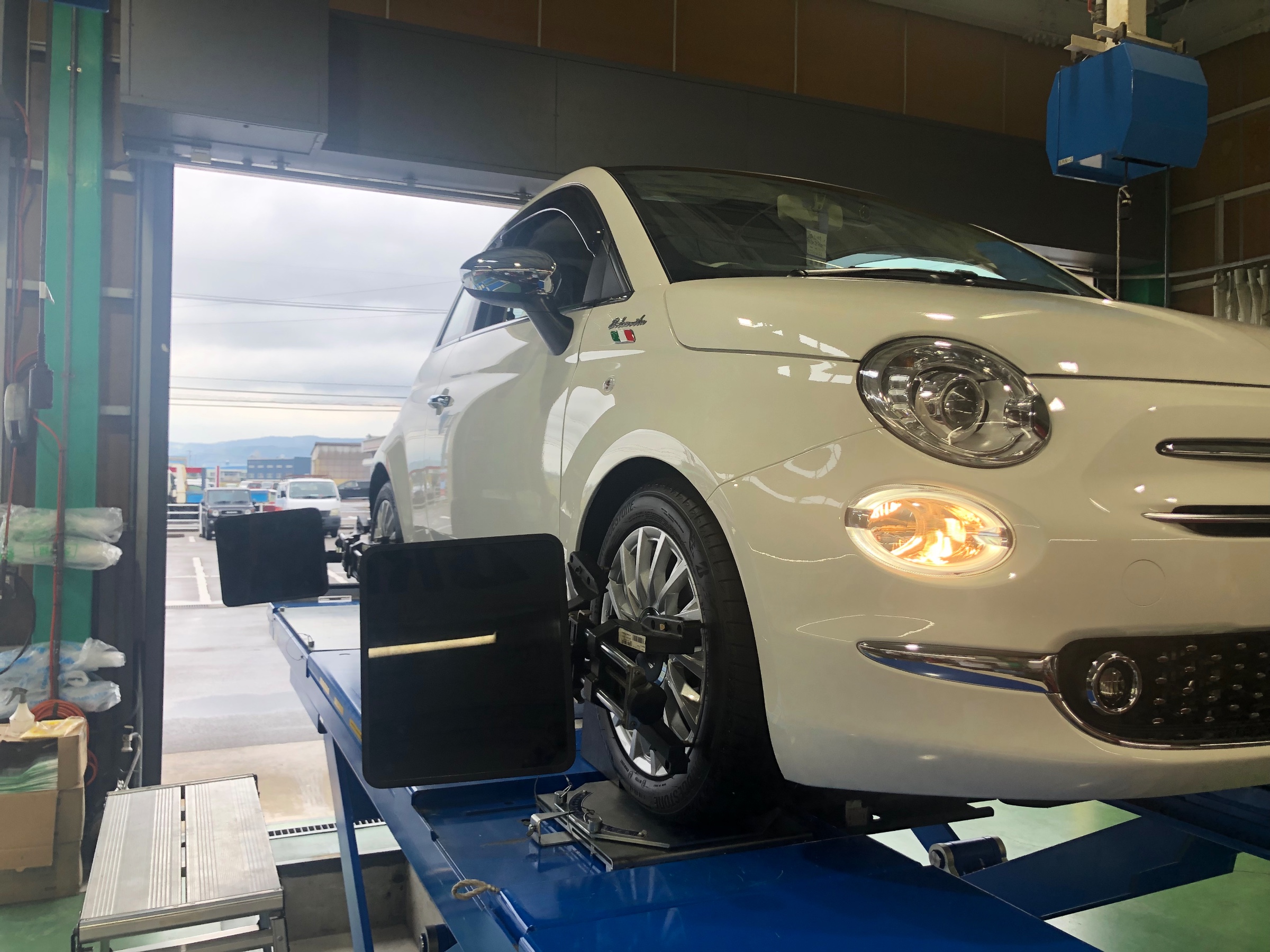 フィアット アライメント ポスト 2022年10月18日 今回の作業は フィアット500のアライメント作業です お車は新車でローダウンをされたのでアライメントを見てほしいと依頼がありました 測定の結果はフロントのトーインが基準値よりトーアウトになっていました 今回はフロントのトーインを2ヶ所調整しました