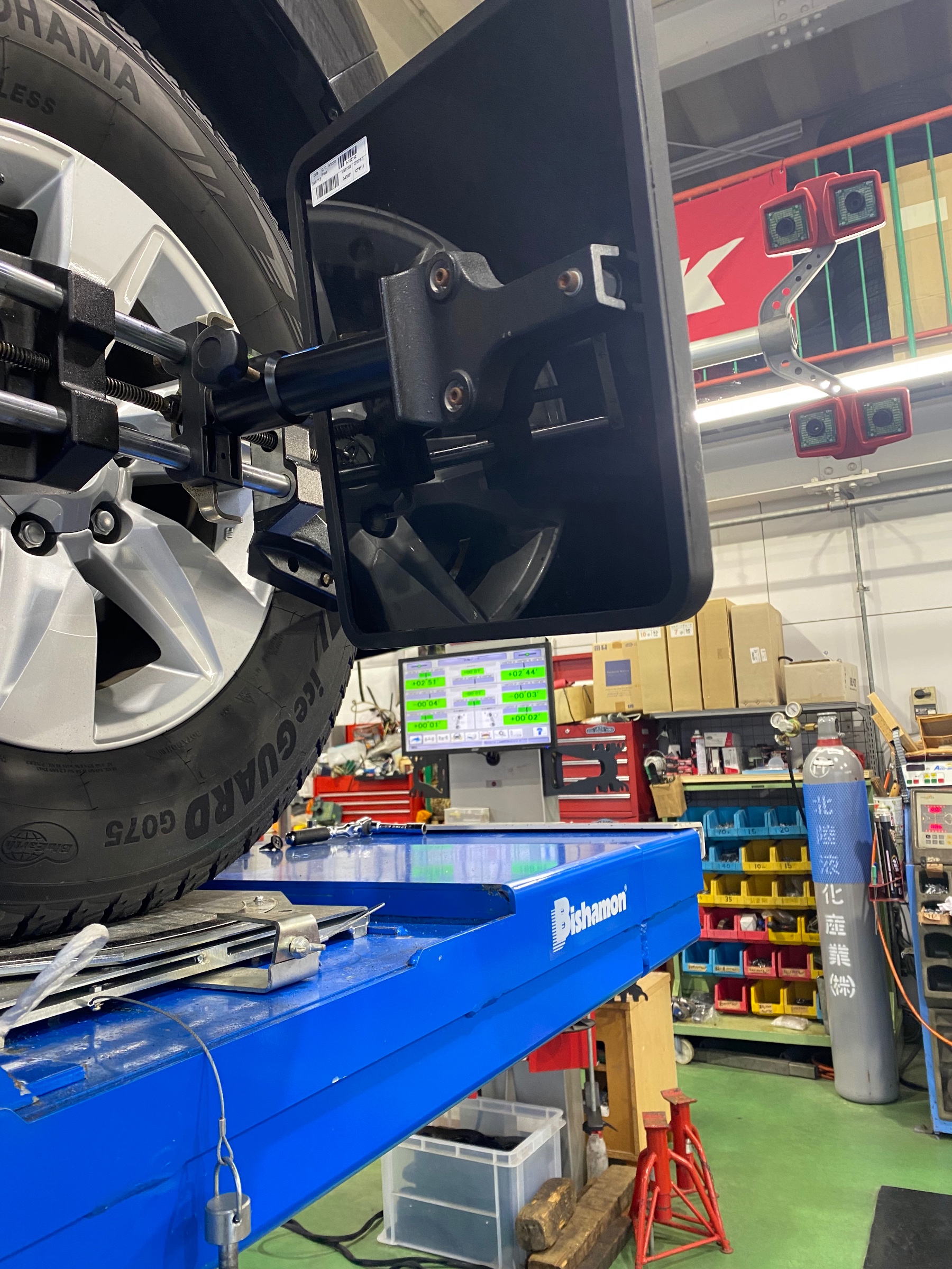 プラド アライメント ポスト 2023年2月19日 今回の作業は ランドクルーザープラドのアライメント作業です 今回のご依頼は先日の雪で左タイヤを縁石に擦ったのでアライメントを見て欲しいとのご依頼でした 測定の結果は左のトーインが基準値から外れていました プラドの場合トーインを調整をしてもキャスターやキャンバーもズレてしまうため 今回フロントのトーイン、キャンバー、キャスターの計6ヶ所調整しました 作業依頼ありがとうございます
