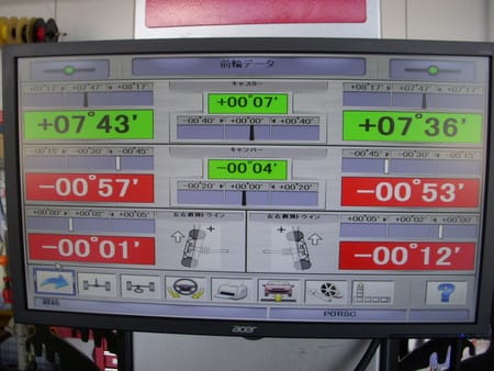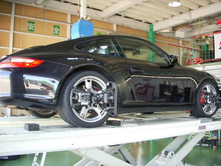 ”今日のアライメント” ポスト 2016年6月5日 今回のアライメント測定調整作業は、ポルシェ911カレラ4です。 タイヤを入替のタイミングでアライメントの依頼を頂きましたので、作業させて頂きました。 今回は二度目の入庫でしたが、一度目の際にドライブブーツの損傷がみられたので、ブーツ交換後、再度の入庫になりました。 アライメント作業では下回りのチェックを同時に行っておりますので、支障があった場合はお客様にご報告させて頂いております。