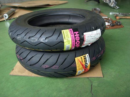 台風6号接近中!ですが・・・ ポスト 2015年5月12日 今日は台風の接近により朝から雨と風が止みませんが・・・もちろん営業中ですっ! 最近割と二輪タイヤの交換をしていますが、当店のユーザー様はバイク乗りが多いのでしょうか??今回もお客様からご注文頂き交換となりました。 ビッグスクーターなのでタイヤはブリヂストン HOOPをチョイスです! (ちなみに二輪タイヤの交換は要相談です。)
