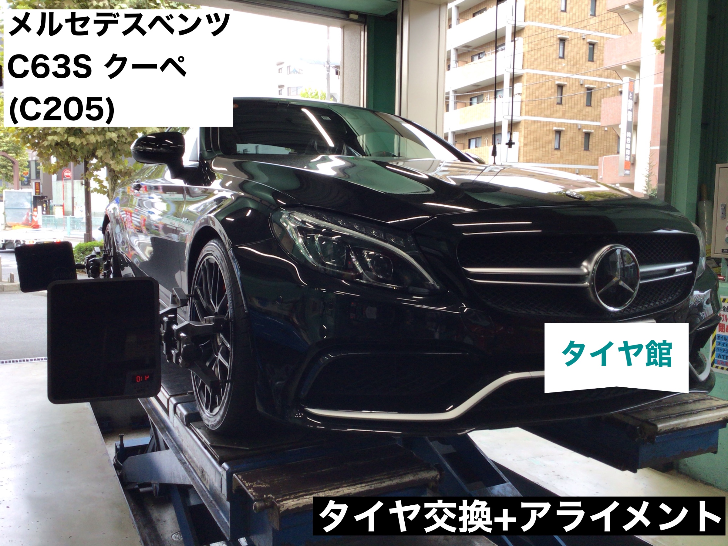 メルセデスベンツ C63Sクーペ タイヤ交換+アライメント!