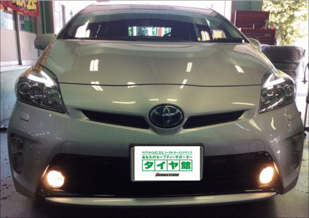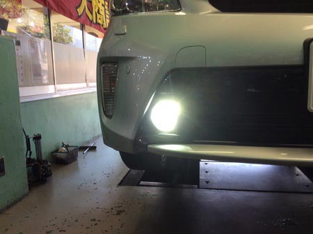 本日は、プリウスの純正フォグランプをLEDバルブに換装。