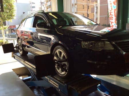 今日はフォルクスワーゲン(VW)のタイヤ交換とアライメントです。
