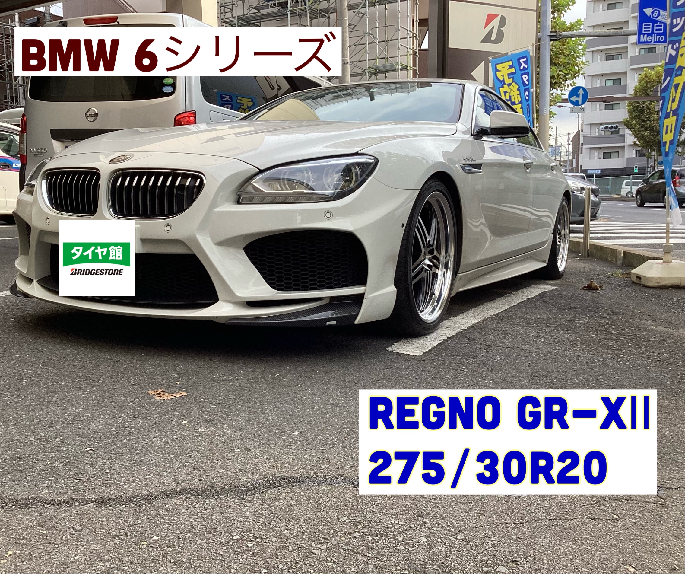 BMW 6シリーズご来店! ポスト 2022年10月7日 こんにちは! 今回ご来店いただいたBMWの6シリーズのタイヤ交換を致しました! サイドカットでのパンク点検でのご来店でした。 タイヤはREGNO GR-XⅡをお選びいただきました! サイズは275/30R20です。 車高が落ちていてインチアップをしているとかっこいいですね。 インチアップ等のご相談乗ります。 是非ご来店お待ちしております。 ご来店ありがとうございました。 タイヤ館目白 カテゴリ:その他 タイヤ関連