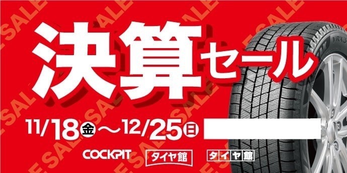 11月18日(金)~12月25日(日)の長期間で、タイヤ館恒例『決算セール』を開催します!!