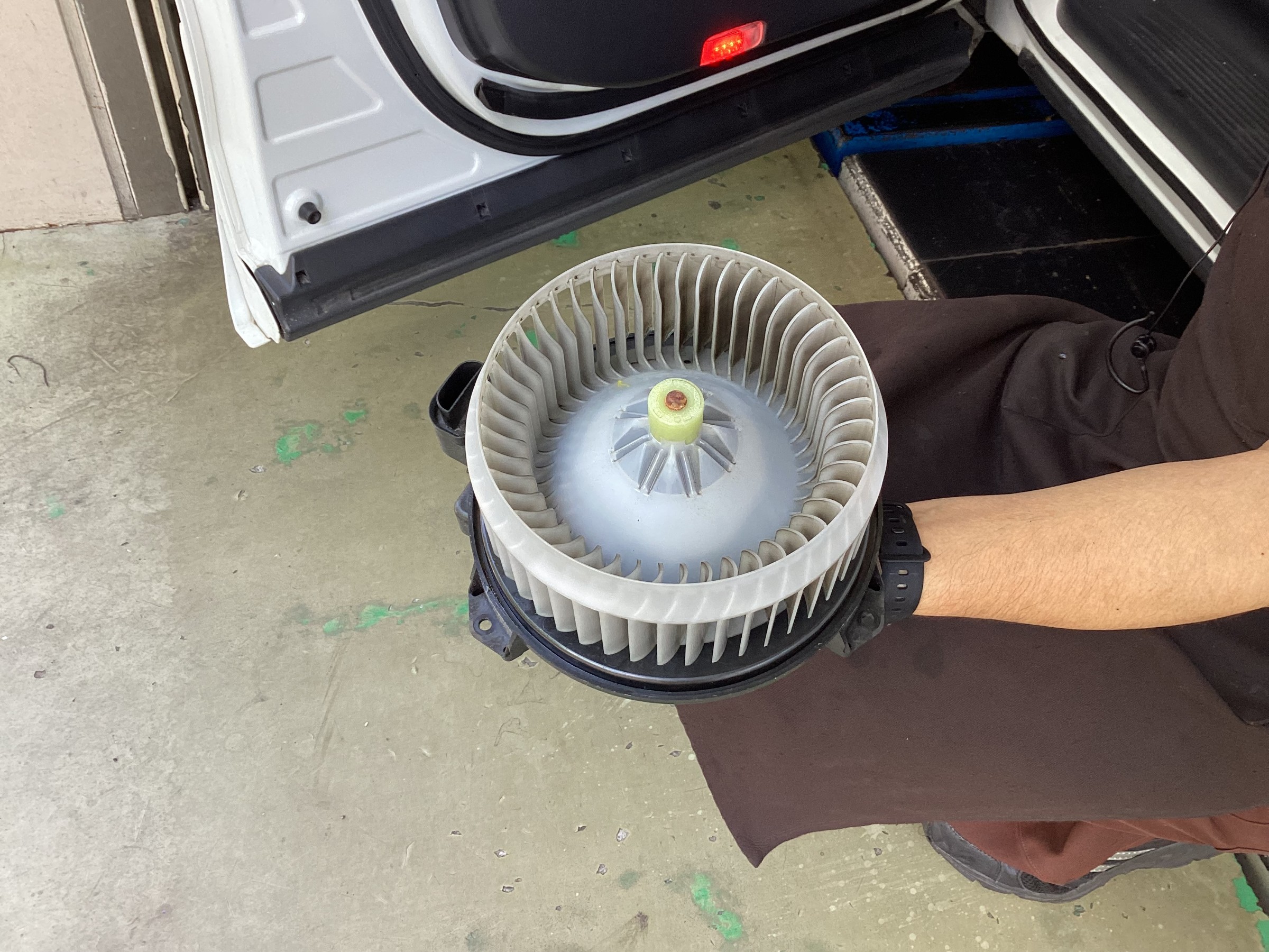 エバポレータ洗浄を行うために、まずはファンを外して準備開始