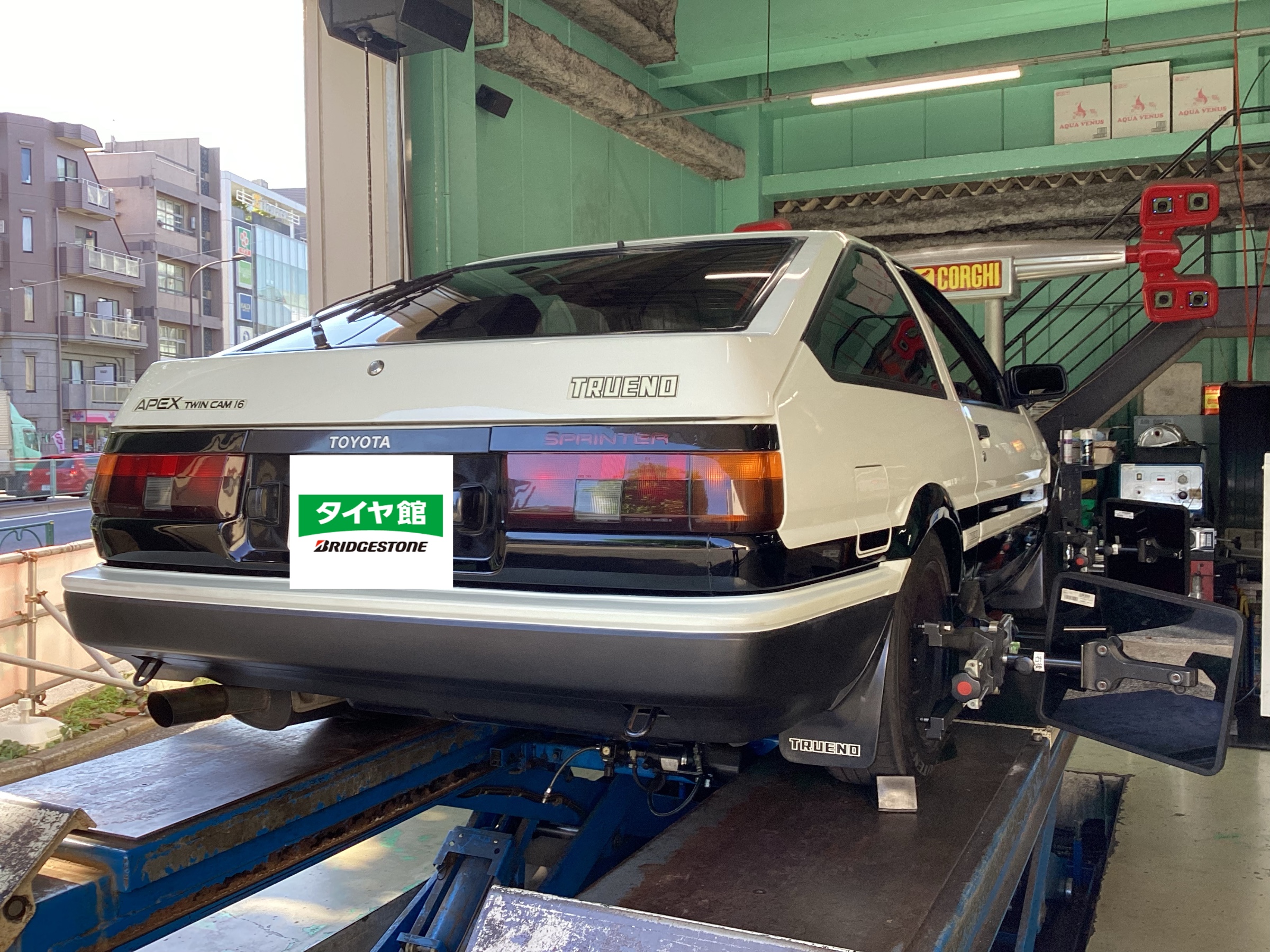 トヨタ スプリンタートレノ ご来店! ポスト 2023年7月20日 こんにちは! 今回ご来店いただきましたトヨタ/スプリンタートレノのアライメント調整を致しました! アライメント調整を致しました! あまりお見かけしないお車だったのでバックショットも! 年数が経ってきますと車高が沈んでしまったりと様々なズレを起こしている可能性が高く ハンドルの操縦に違和感を覚えるお客様も少なくないです。 愛着があるお車を長くお乗りになって頂けるようアライメント調整でズレや歪みの確認、改善を! ご来店いただきありがとうございました! またのお越しをお待ちしております♪ タイヤ館目白 タイヤ館 目白 住所:161-0031東京都新宿区西落合3-2-21 電話番号: 03-5988-3251 相談予約 タイヤ点検・安全点検/タイヤ履き替え/オイル交換/その他ピット作業の予約