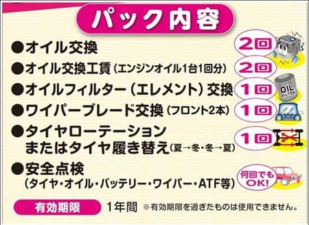 オイル交換やワイパー交換、履き替え作業などがパックになって