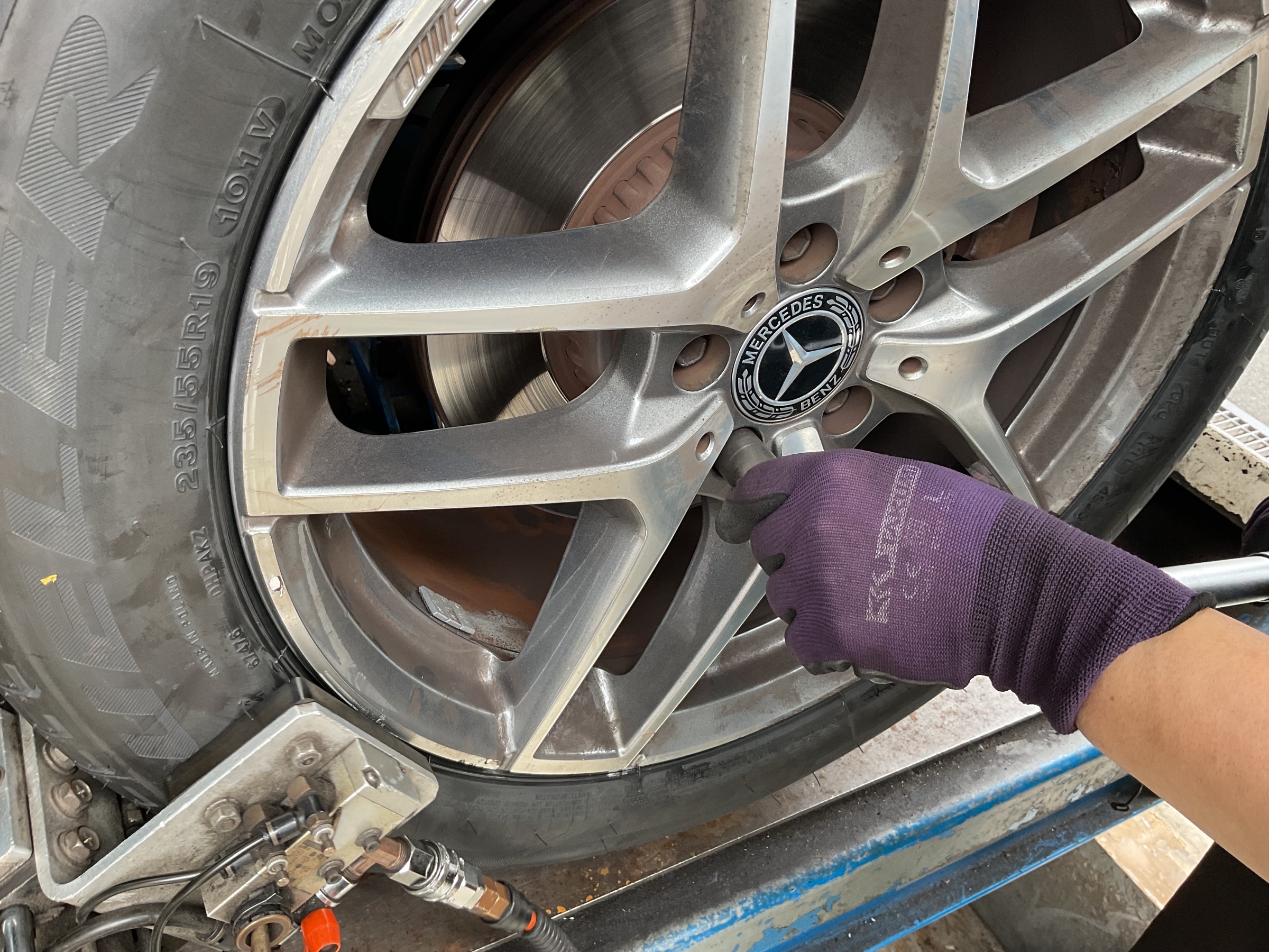 ベンツGLCタイヤ交換 ポスト 2025年11月22日 メルセデス・ベンツGLCのタイヤ交換をしました! まずタイヤを外していきます! 次にタイヤとホイールをバラしていきます! タイヤとホイールがバラせたら新品タイヤを組み付けていきます! 後は車に取り付けして完了です! 今回取り付けしたタイヤは‥‥ ブリヂストン デューラーH/PスポーツMOEです! サイズ:235/55R19 GLC用OEタイヤになります! 次回はGLCのアライメント調整を掲載します! タイヤ館目白