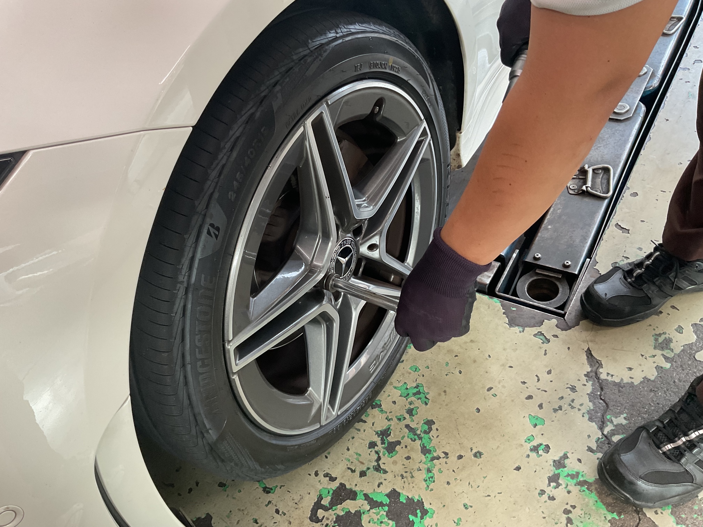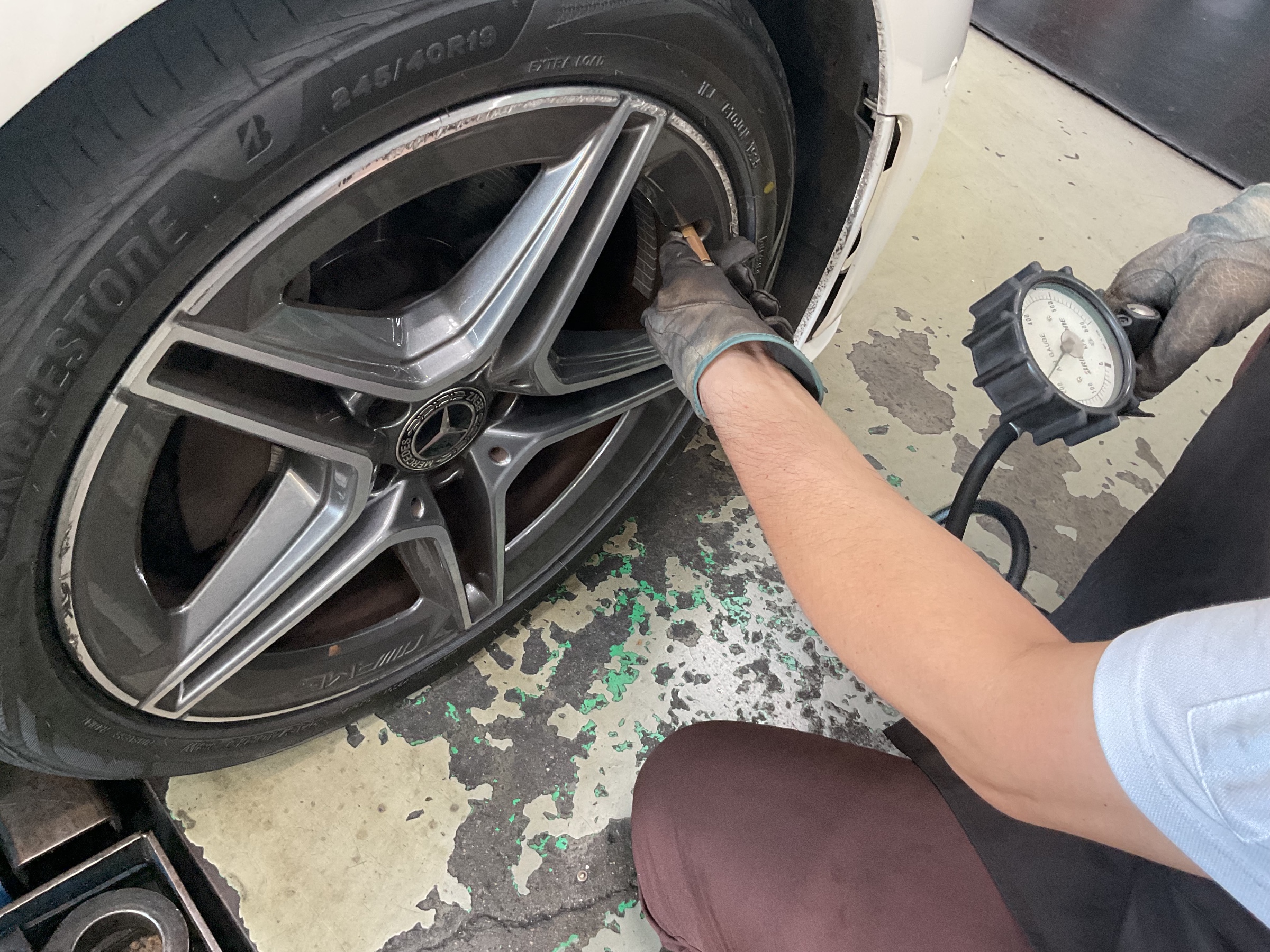 ベンツCLS 100km点検! ポスト 2025年9月8日 ベンツCLS100km点検! 前回タイヤを新品交換した ベンツCLSが100km点検で来店されました! 早速まずは空気圧のチェックからやっていきます! 空気圧を4本見終わったら次はタイヤの増し締めチェックをします! タイヤ:REGNO GR-XⅢ サイズ前:245/40R19 サイズ後:275/35R19 予約はこちら! タイヤ館目白