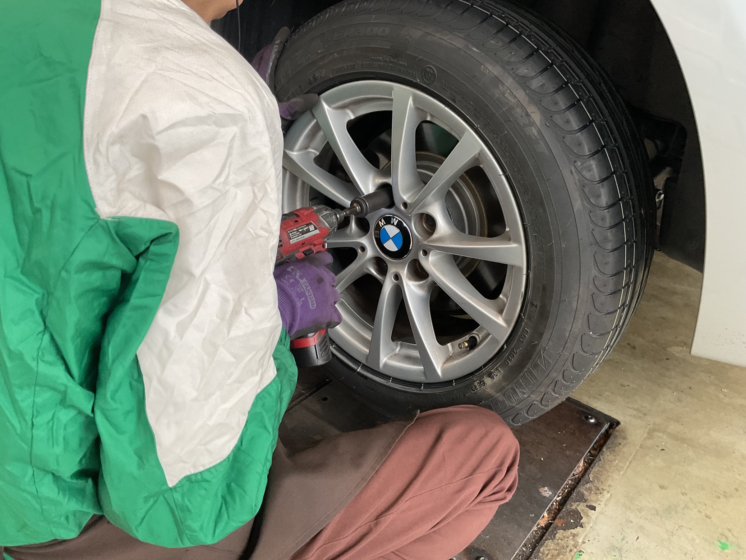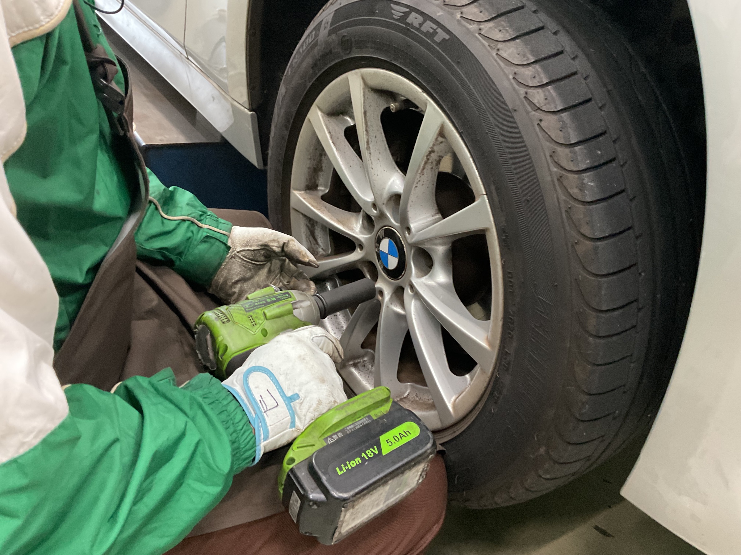 しっかり調整出来たらタイヤをお車に取り付けて……