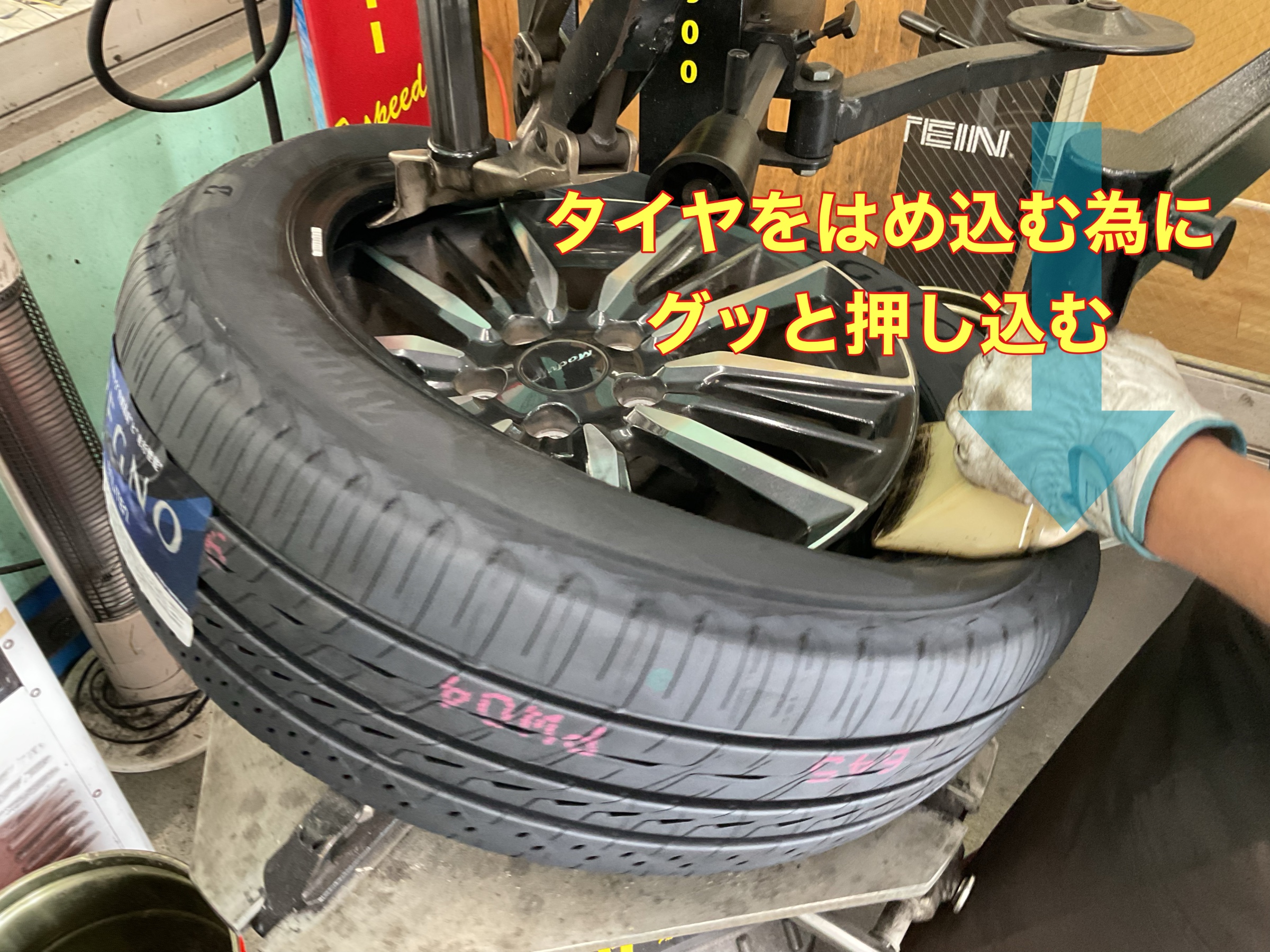 ホイールとタイヤが離れないように空気を入れてかみ合わせます!