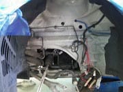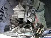 外されたショックアブソーバーにスプリングを組み込んで逆の手順で
