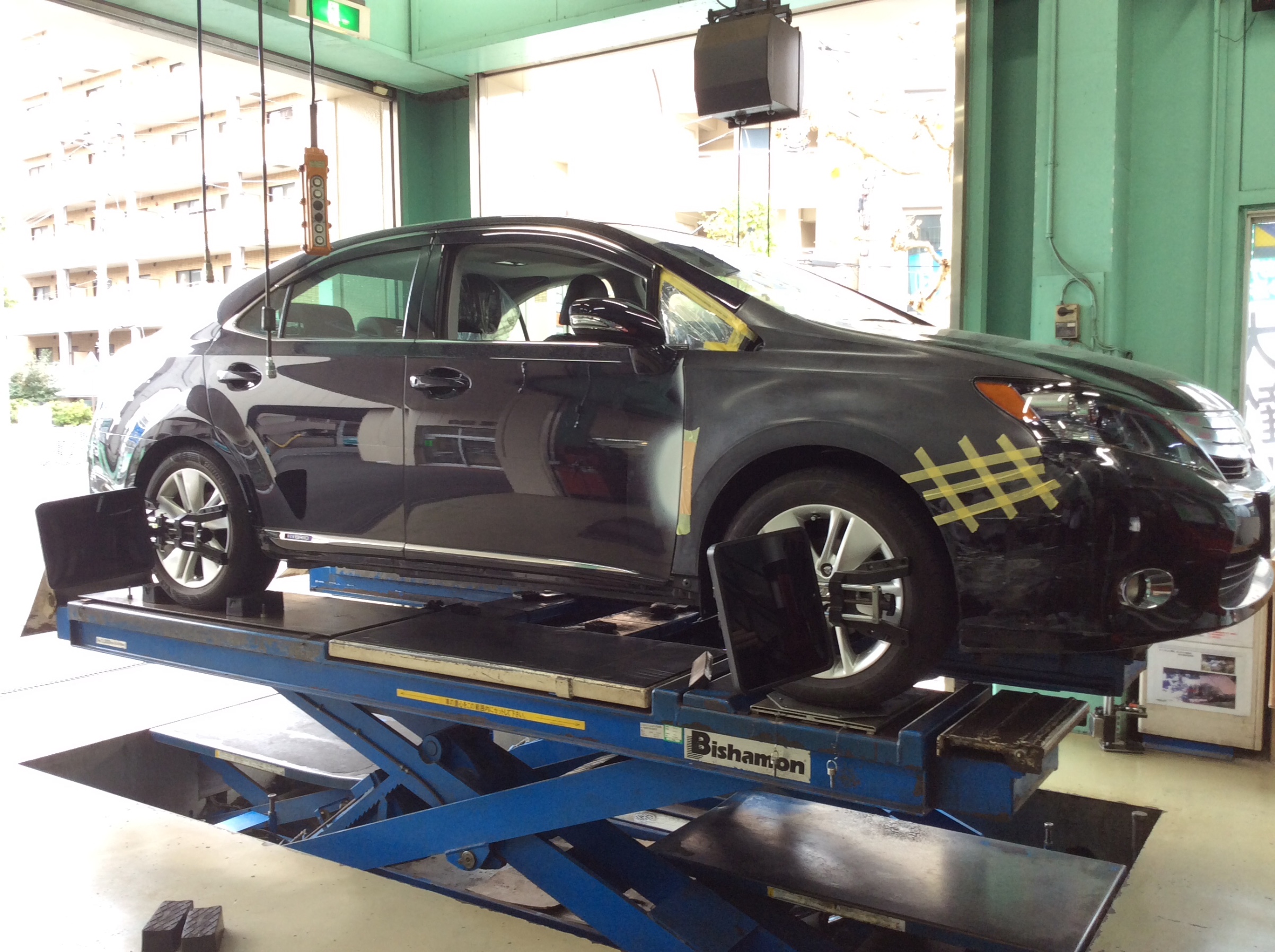 ご覧の通りまだ修理中(残すは板金のみです)ですが、先にアライメント調整を行いました。