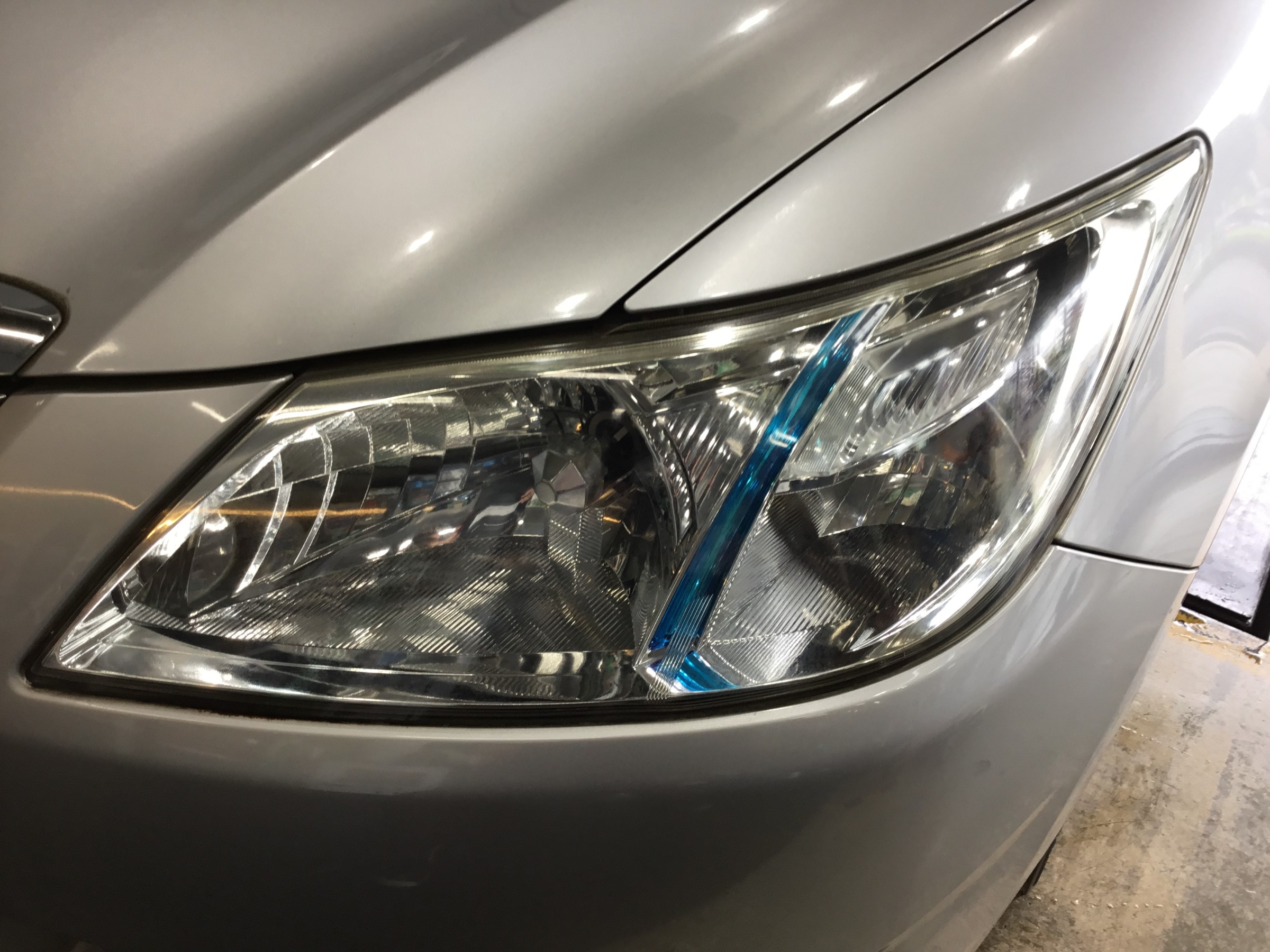 本日、エクシーガのヘッドライトクリーニング施工を行いました。