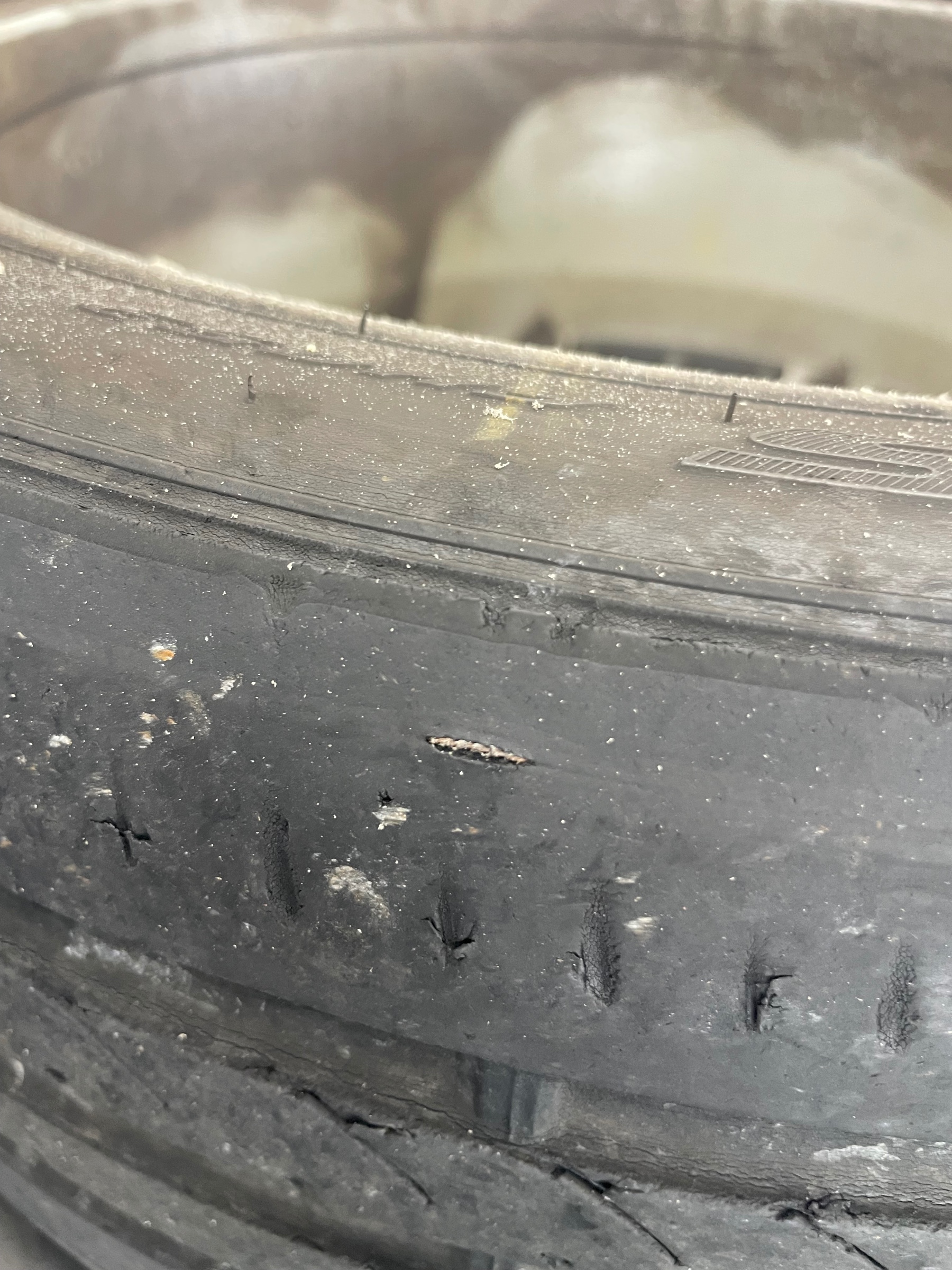 こちらの写真は今まで付いていたタイヤで、よく見てみるとワイヤーが出てしまっています。