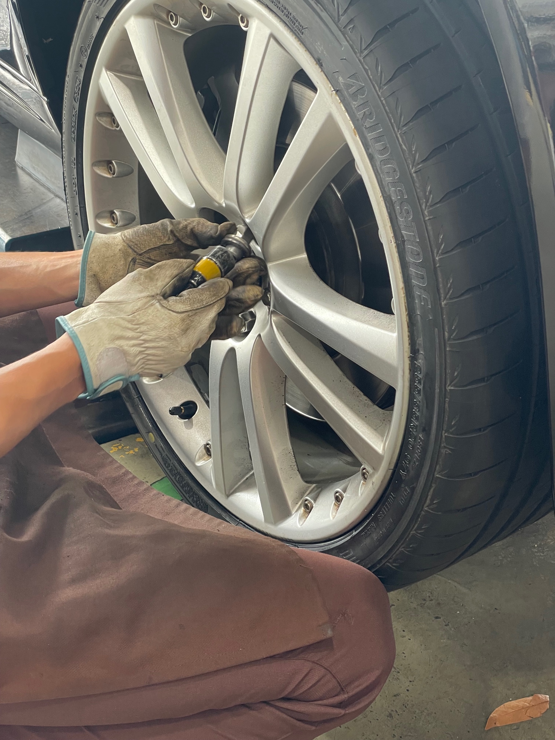 ですが作業中にホイールに傷がつかない様、丁寧に慎重に進めていき無事に作業が終了致しました!!
