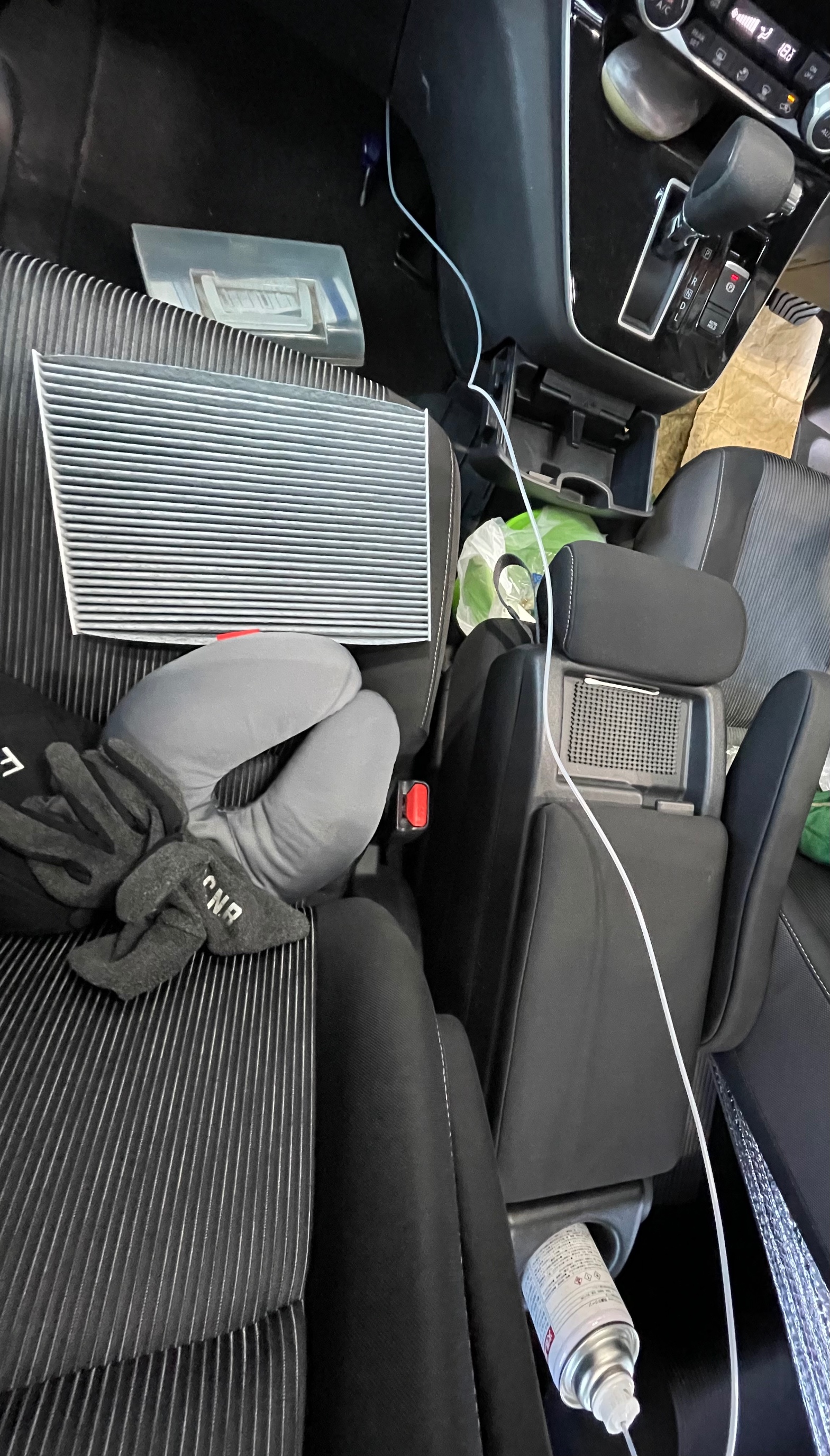 この作業をするとともに、エアコンフィルターに匂いがつきやすい為エアコンフィルターを同時に交換するとより効果的です。