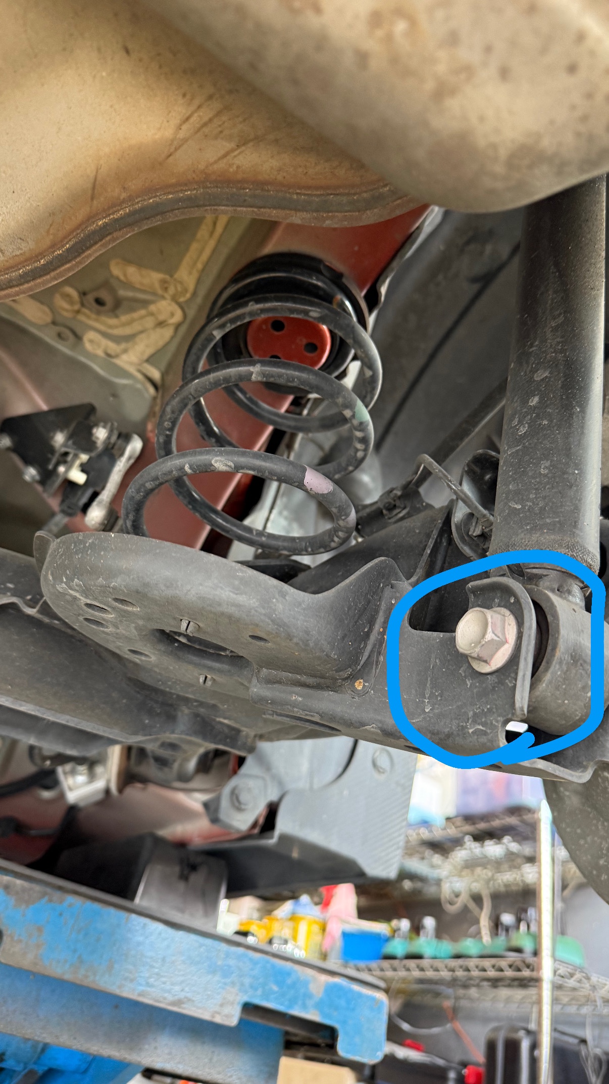 ショックアブソーバの上部と下部にある取り付けボルトを取り外し、ショックアブソーバーとコイルスプリングを取り外します!!
