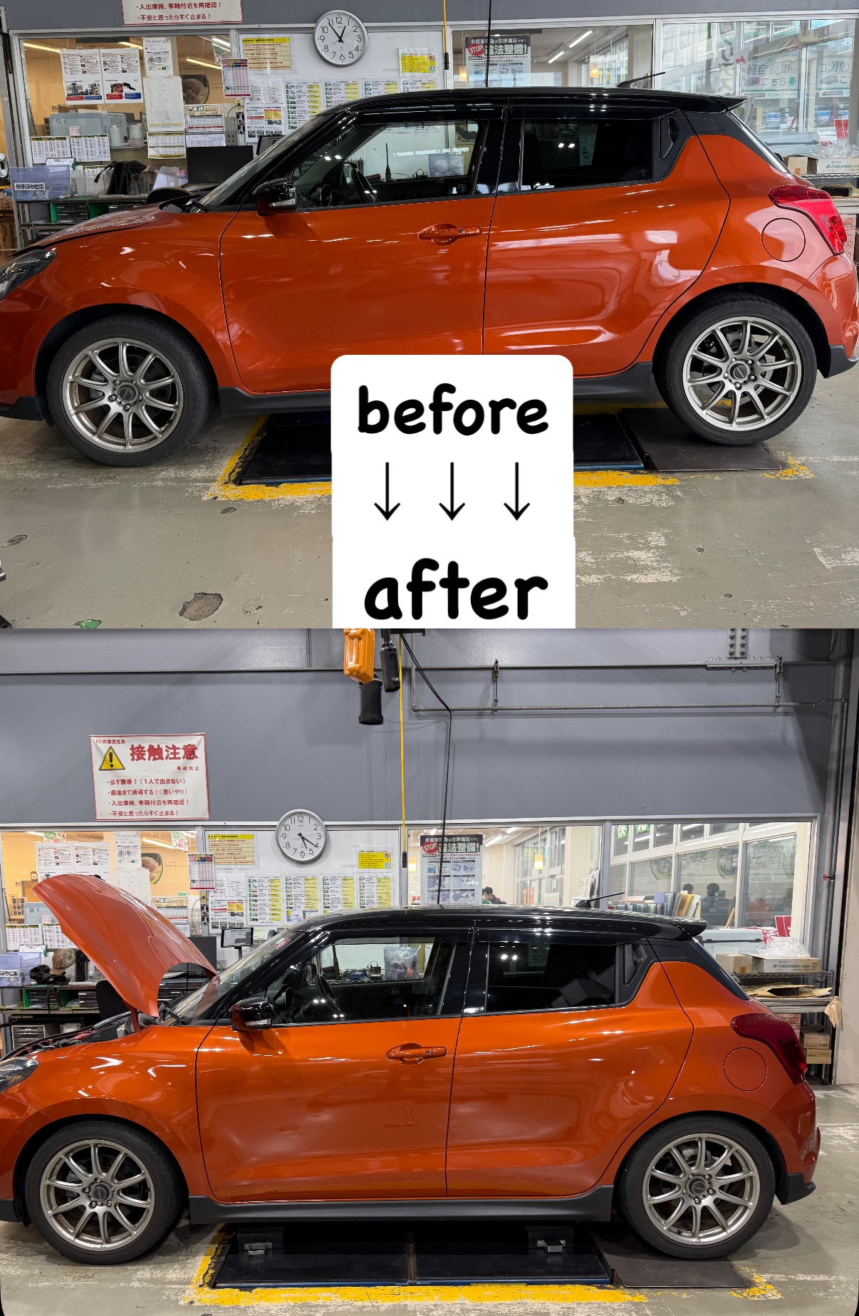 本日は先日投稿したSUZUKI:スイフトスポーツの車高調取り付け後編となります!