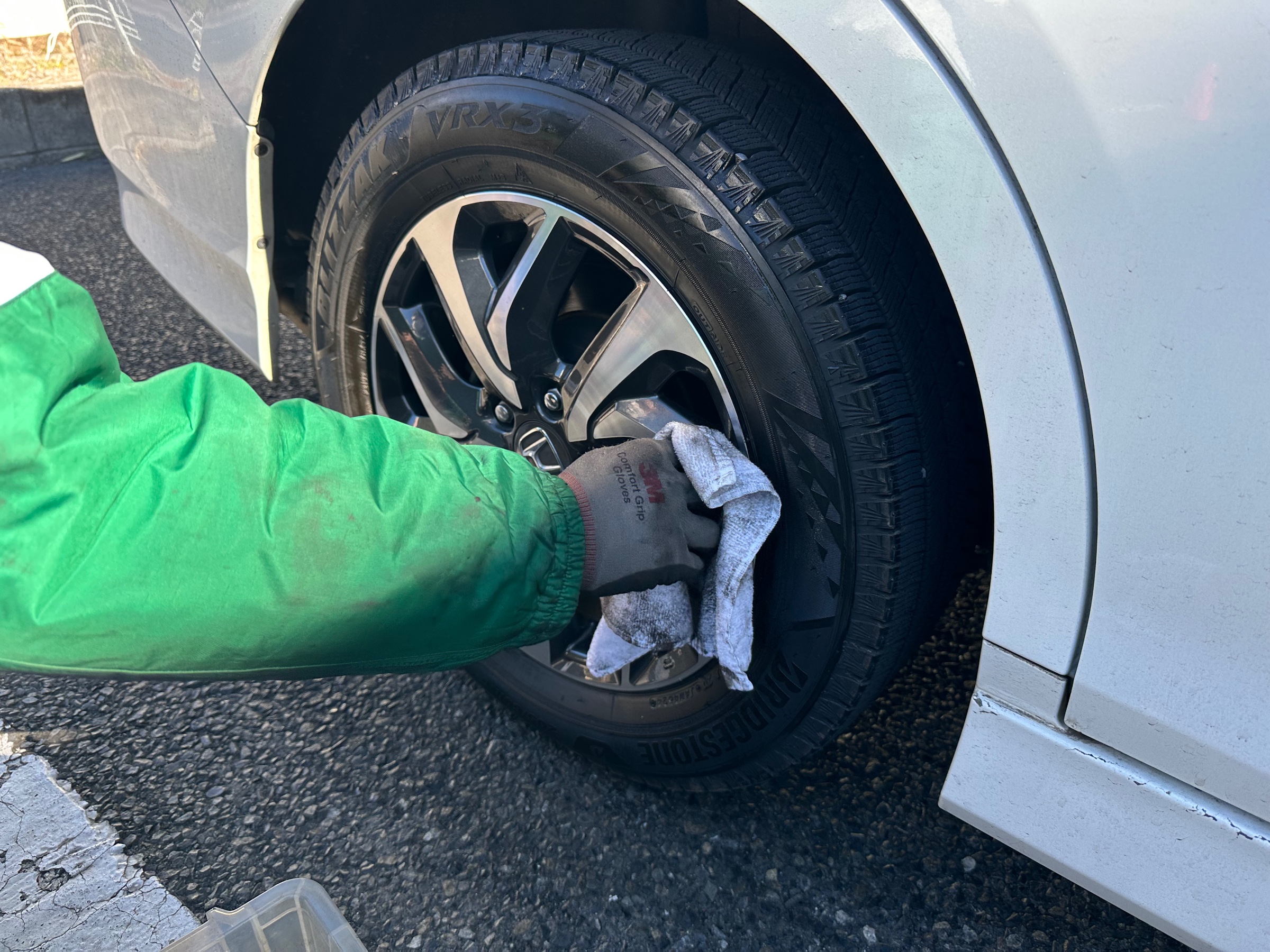 点検する内容は、ナットの増し締めとホイール清掃ワックスがけ、空気圧の補充をすることです。