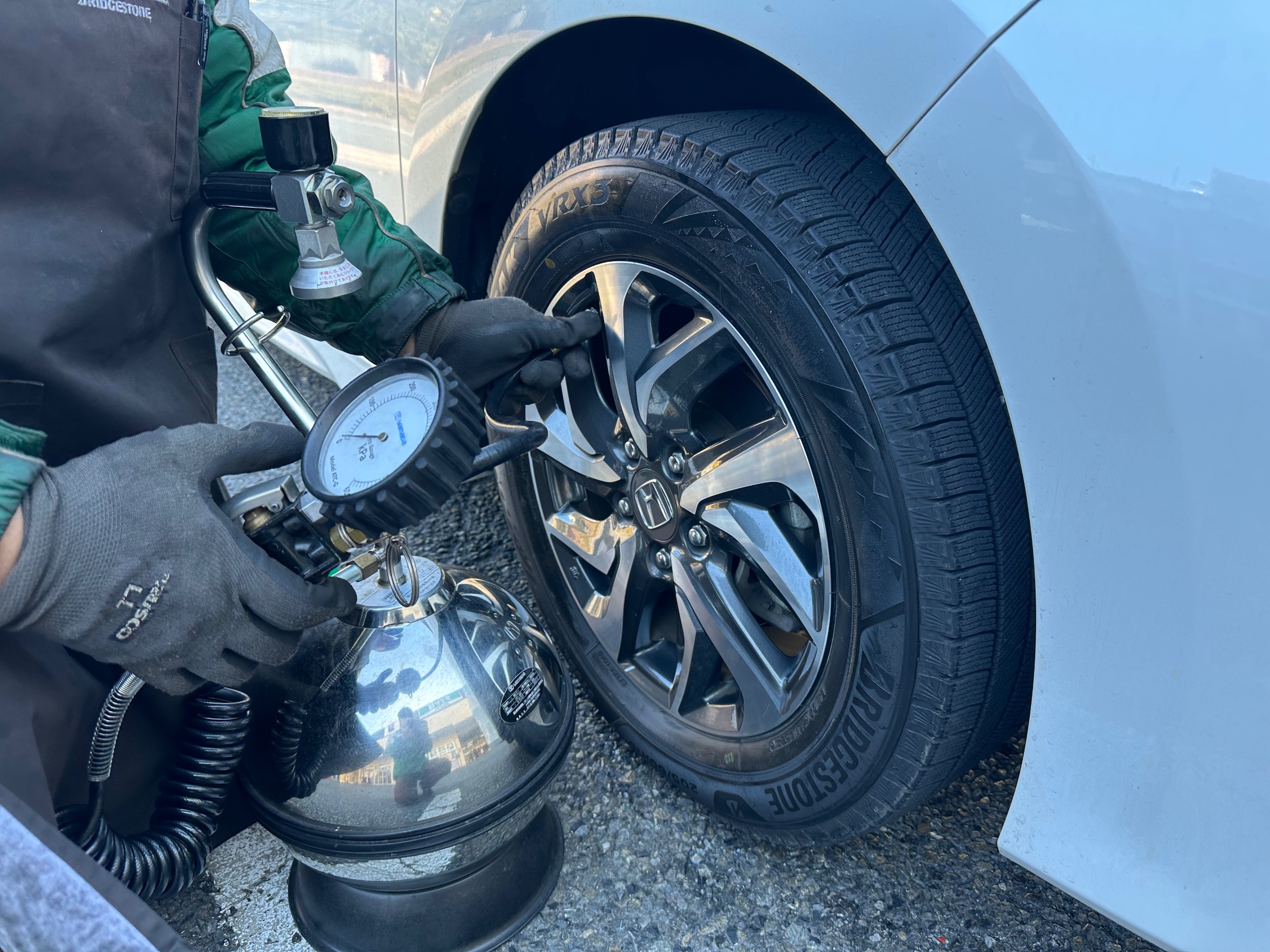 新しくタイヤ購入していただいたお客様にご案内している点検です。