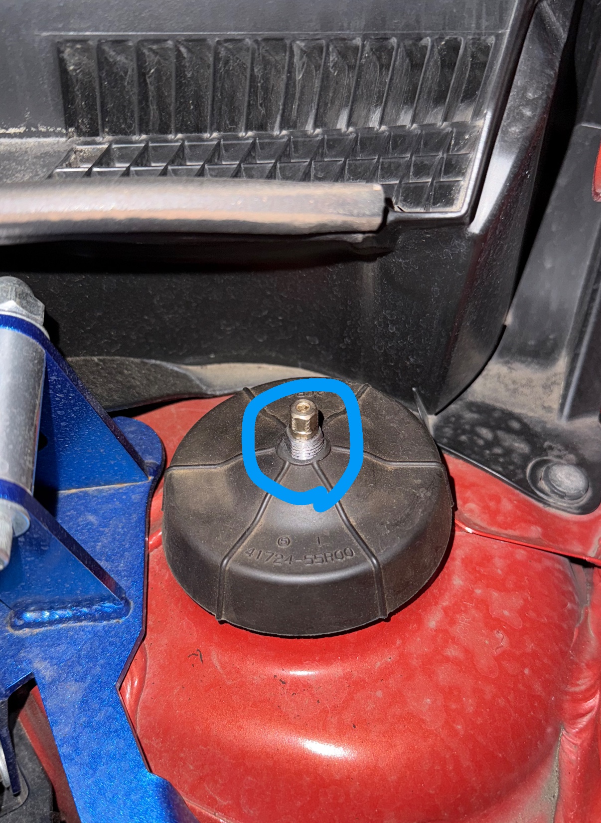 写真の青い丸のところが減衰力調整ネジとなっております!