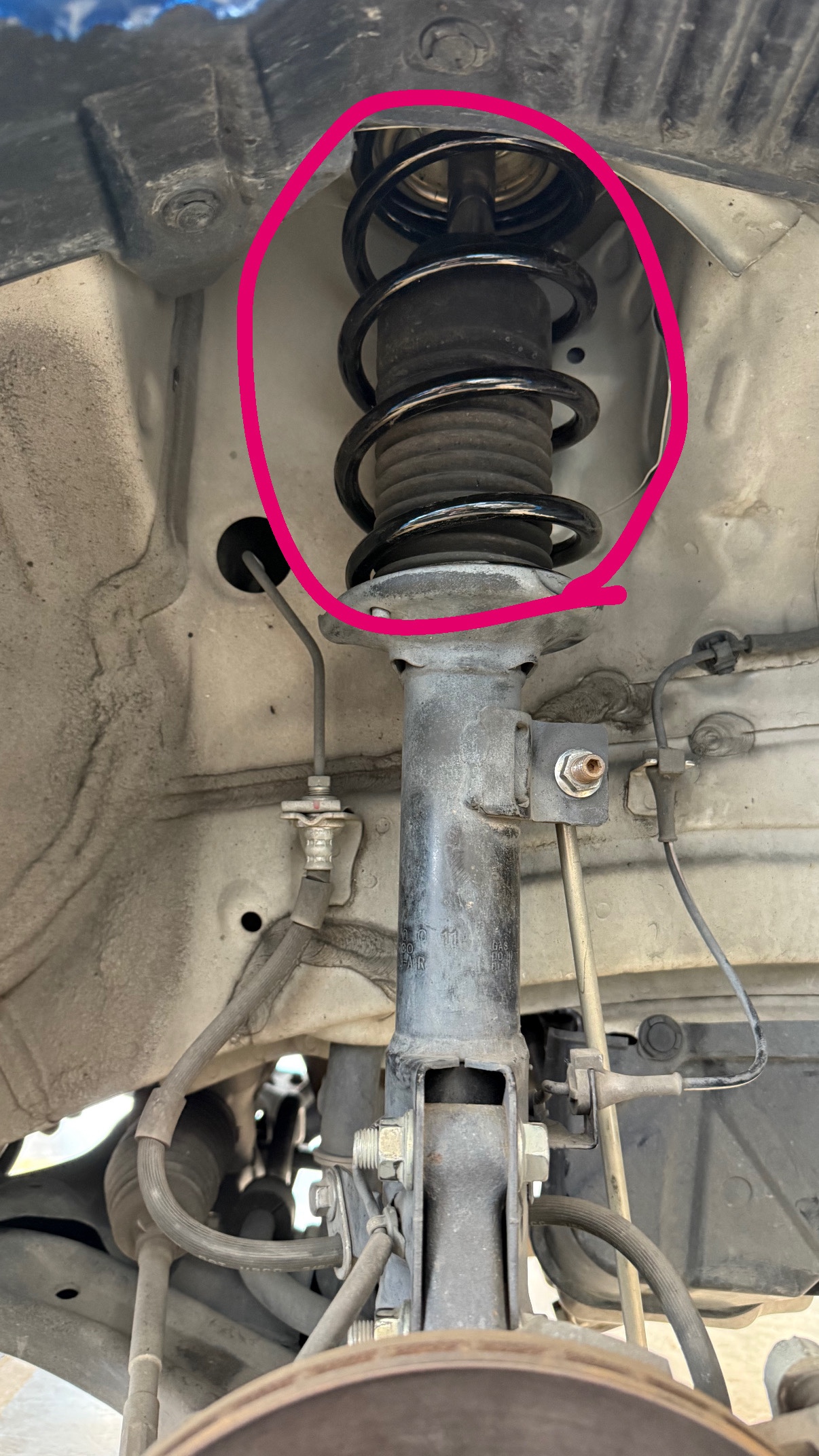 写真のピンク色で囲まれた部分がフロントとリアのスプリングです!