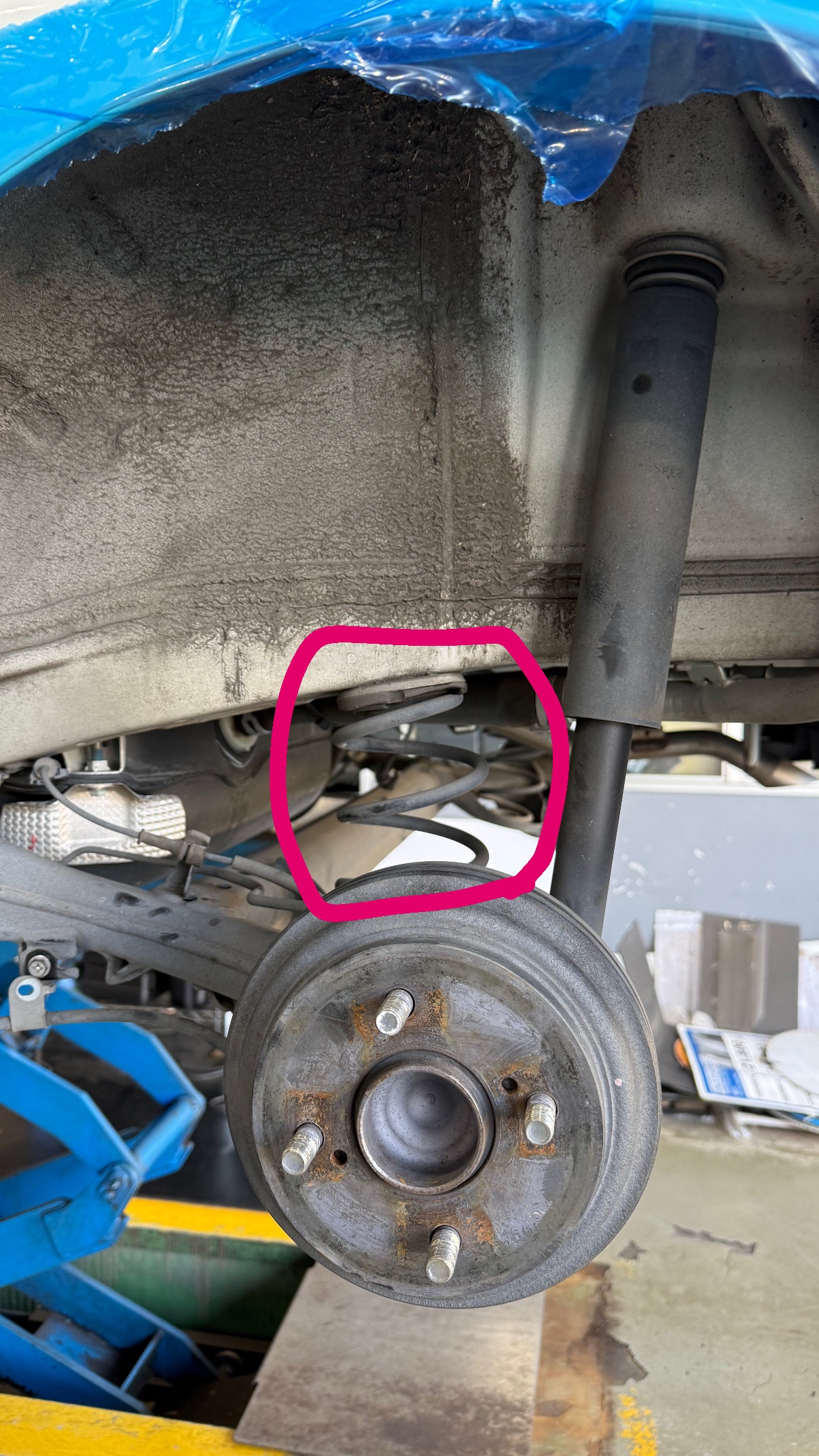 リアはショックアブソーバとスプリングが別体となっておりますので、フロントと比較すると難易度の低い作業となっております!