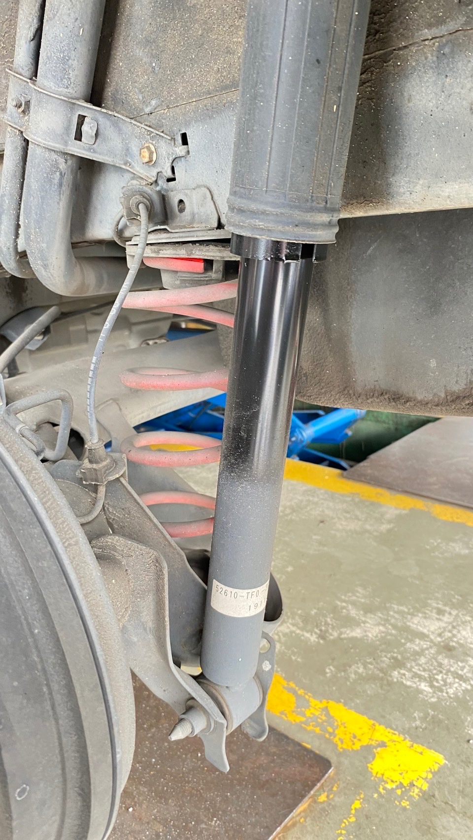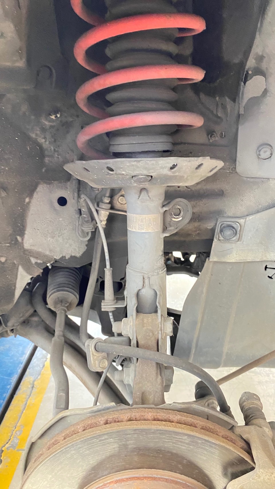 フロントはストラット式と言って衝撃を吸収するスプリングと、衝撃に対する減衰力を発生させるショックアブソーバーが一体のものとなっております!
