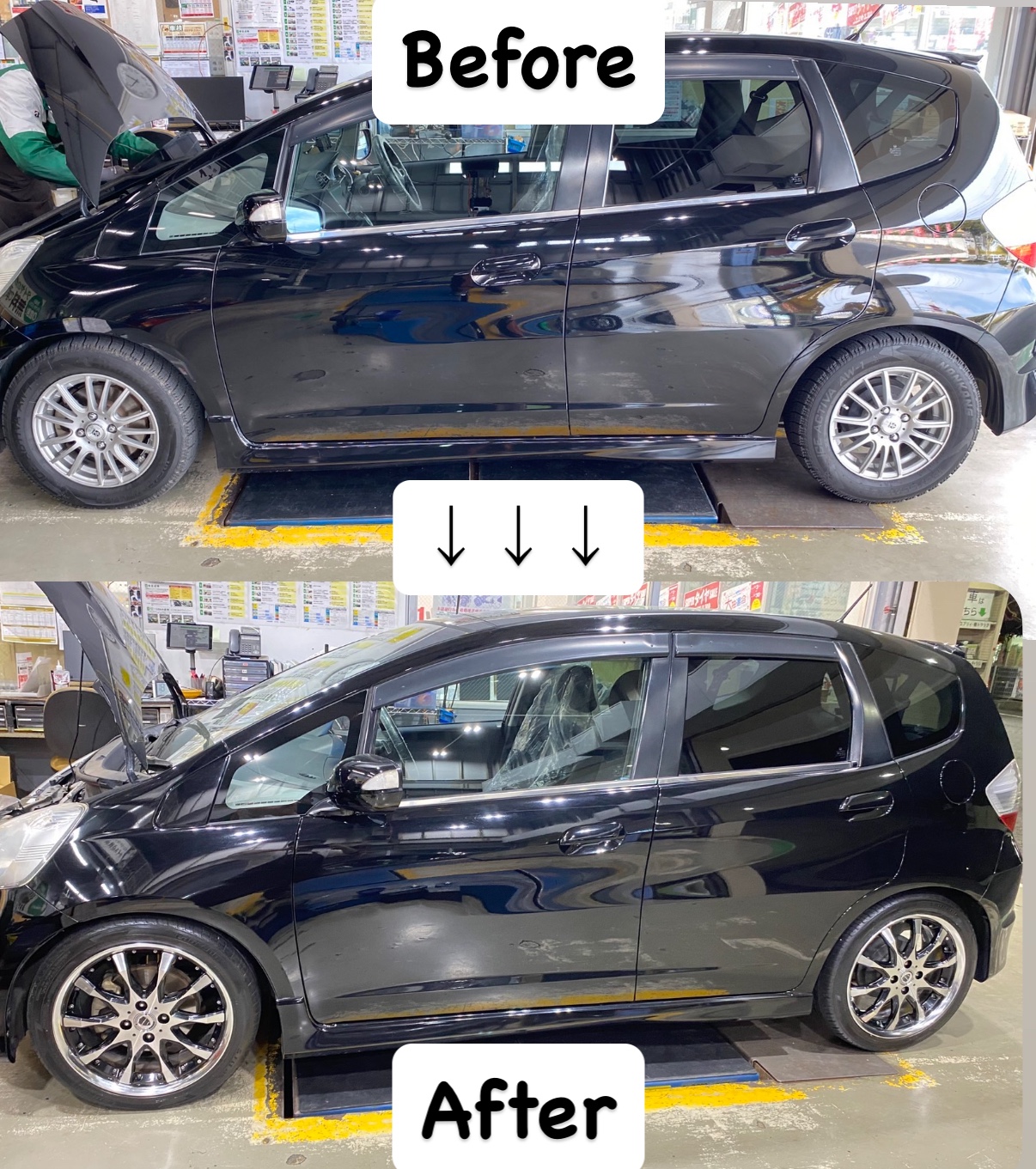 本日はホンダ : フィットRSの足回り交換をさせていただきましたので、ご紹介します!