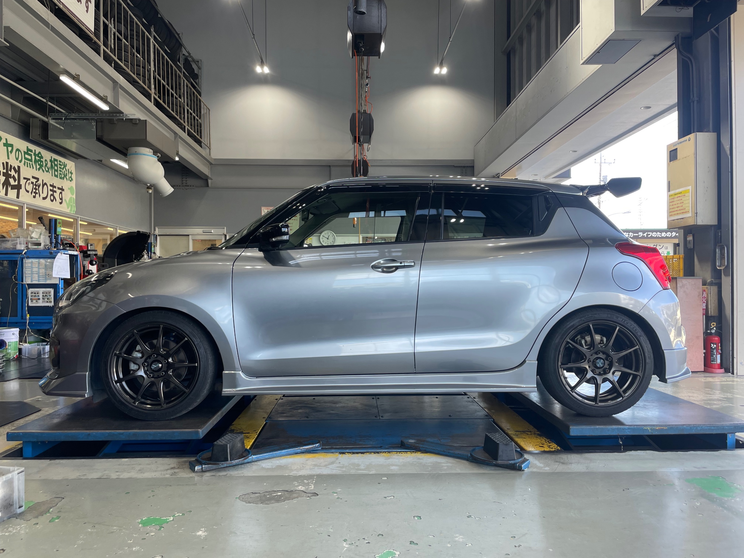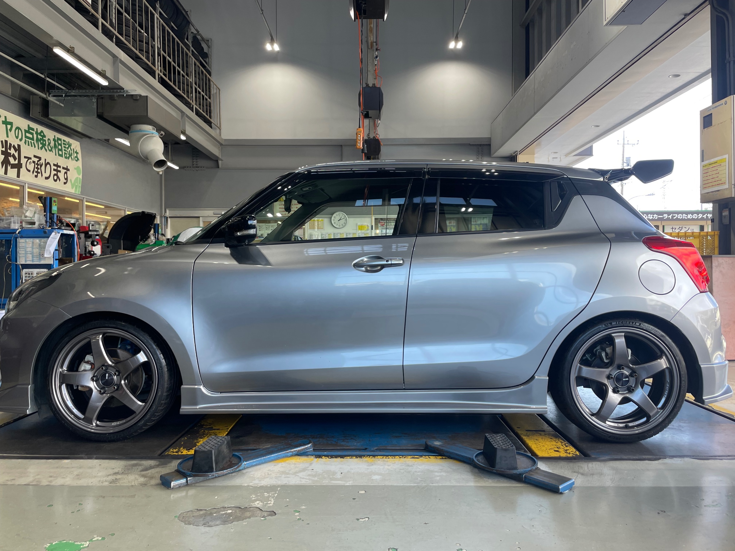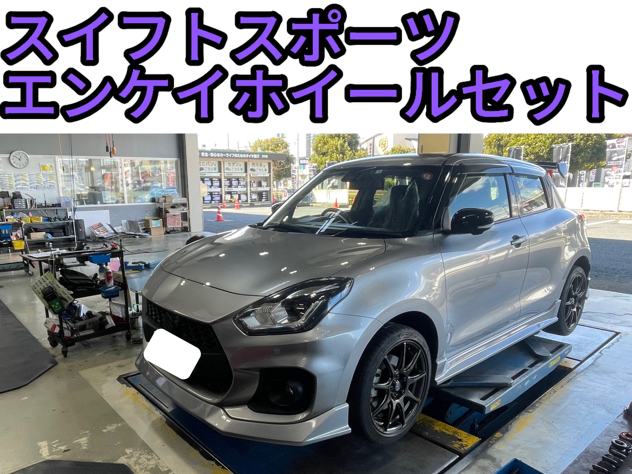 本日はスズキ スイフトスポーツのタイヤ、ホイールセット取り付けを紹介していきたいと思います。